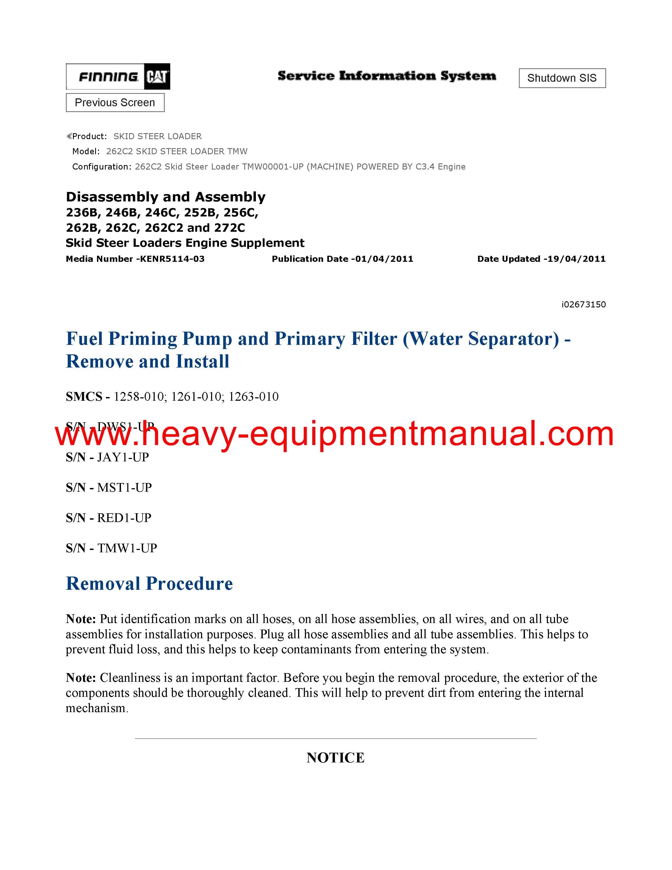 It is Complete Original Factory for Caterpillar 262C2 SKID STEER LOADER. Covers all the service and repair information about Caterpillar 262C2 SKID STEER LOADER. The information in this manual covers everything you need to know when you want to service and repair Caterpillar 262C2 SKID STEER LOADER.
