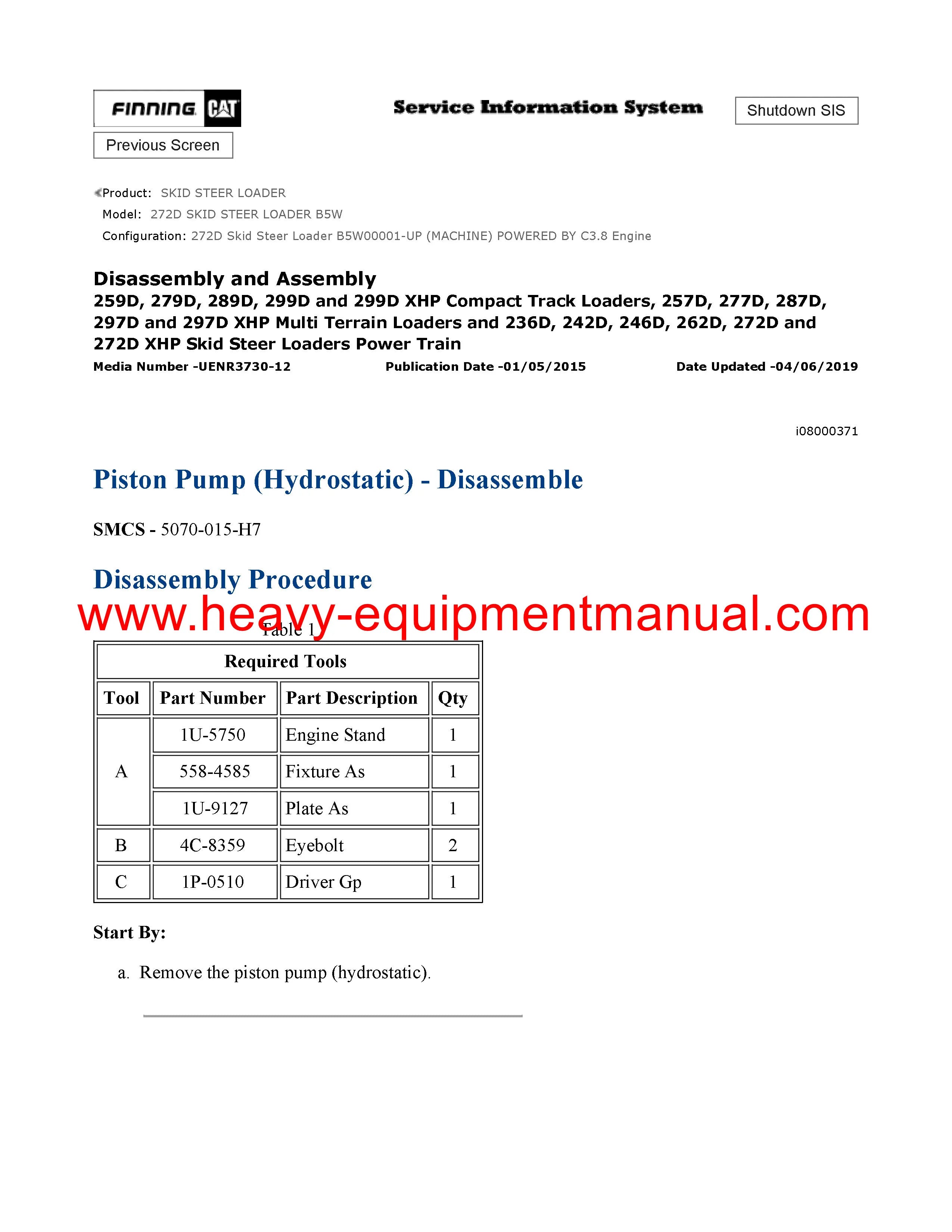 It is Complete Original Factory for Caterpillar 272D SKID STEER LOADER. Covers all the service and repair information about Caterpillar 272D SKID STEER LOADER. The information in this manual covers everything you need to know when you want to service and repair Caterpillar 272D SKID STEER LOADER.