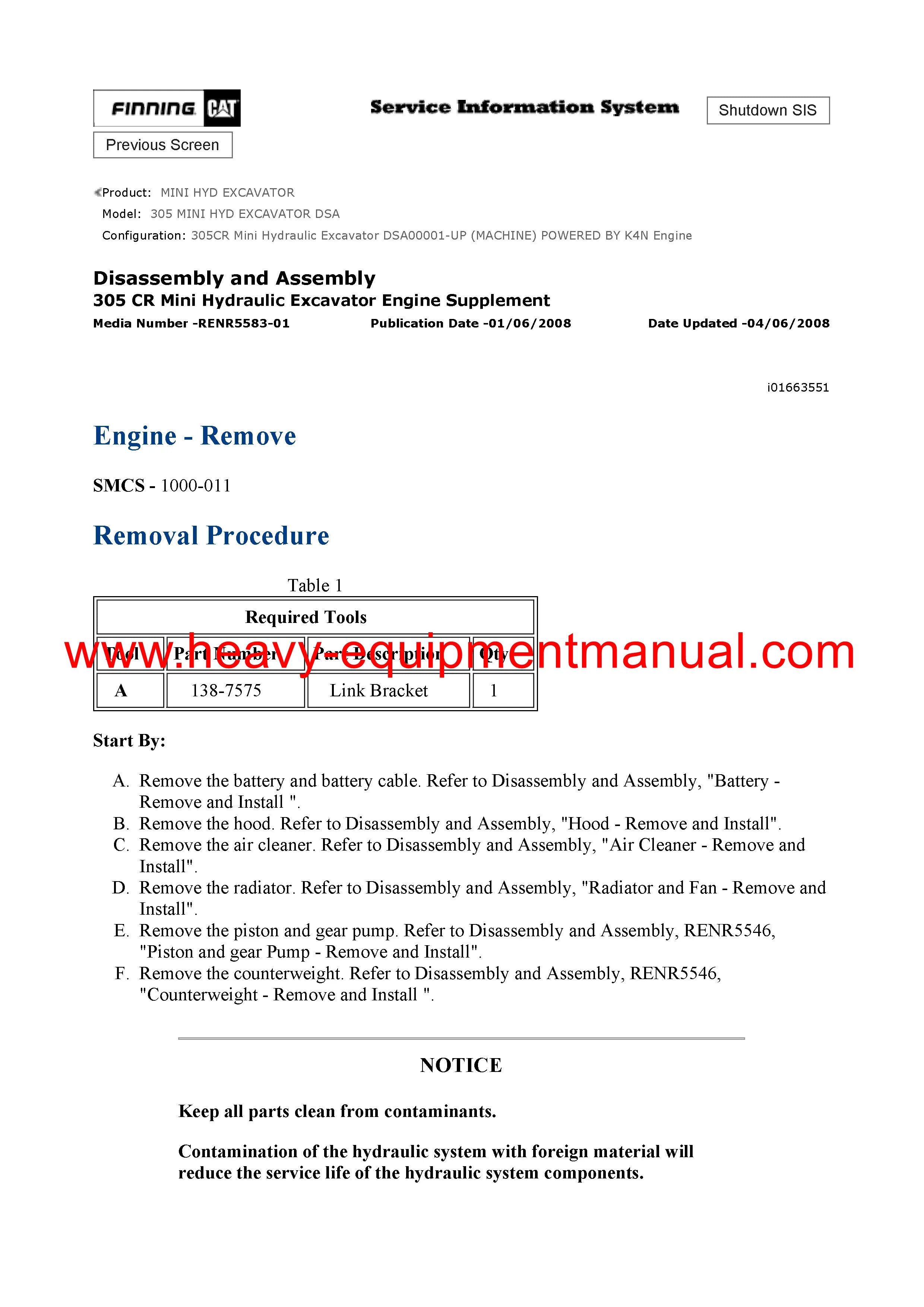 It is Complete Original Factory for Caterpillar 305 MINI HYD EXCAVATOR. Covers all the service and repair information about Caterpillar 305 MINI HYD EXCAVATOR. The information in this manual covers everything you need to know when you want to service and repair Caterpillar 305 MINI HYD EXCAVATOR.