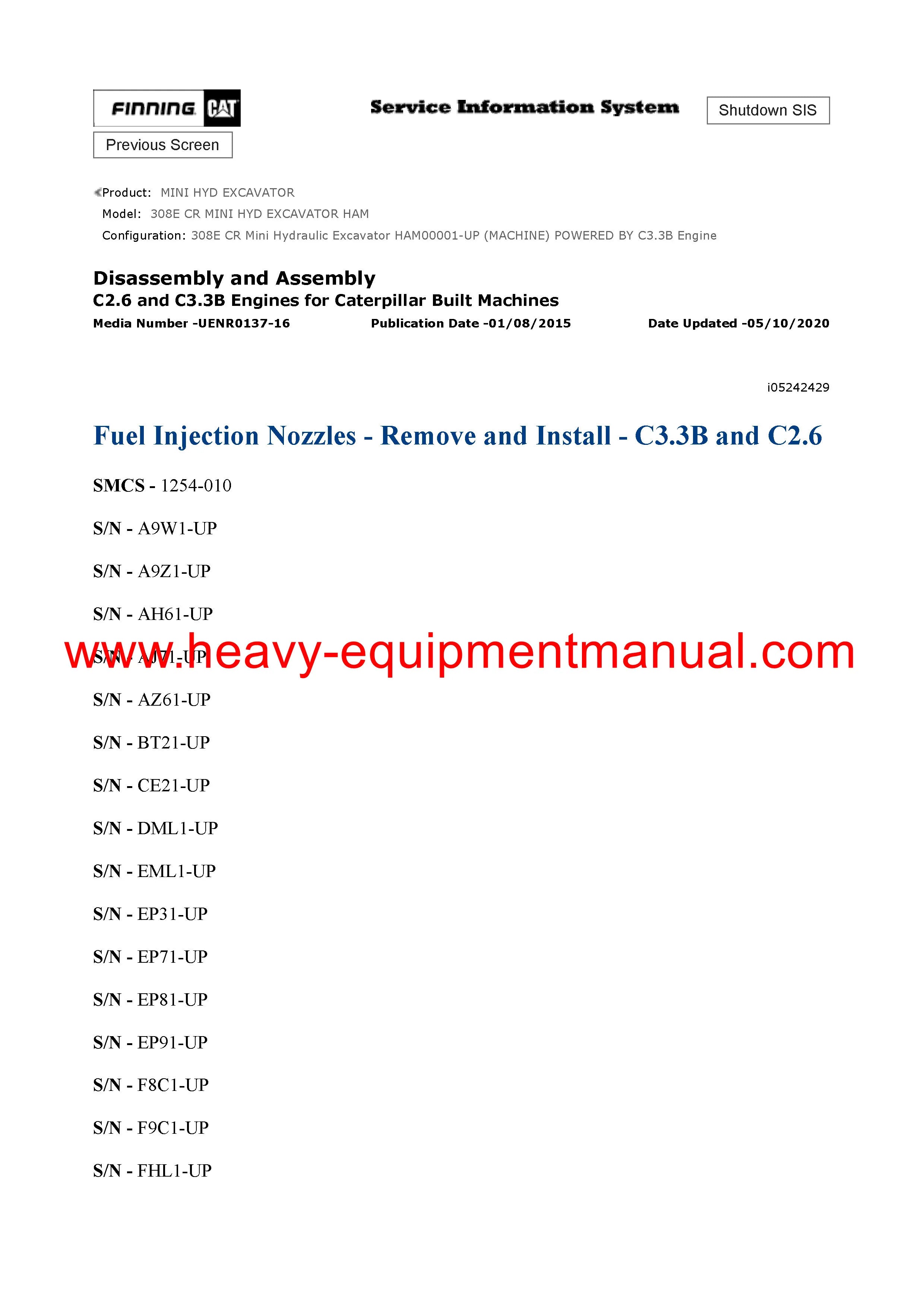 It is Complete Original Factory for Caterpillar 308E CR MINI HYD EXCAVATOR. Covers all the service and repair information about Caterpillar 308E CR MINI HYD EXCAVATOR. The information in this manual covers everything you need to know when you want to service and repair Caterpillar 308E CR MINI HYD EXCAVATOR.