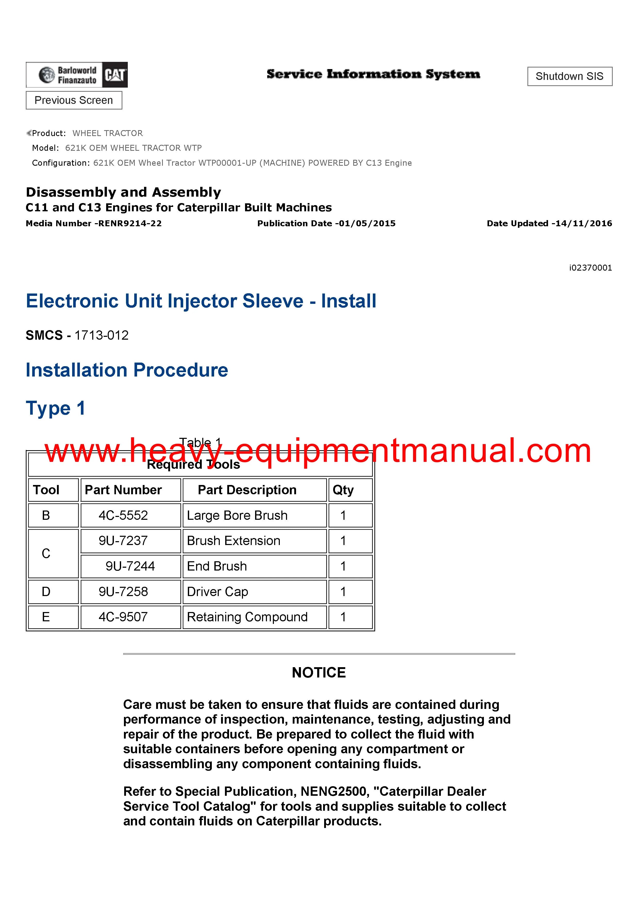 It is Complete Original Factory for Caterpillar 621K OEM WHEEL TRACTOR. Covers all the service and repair information about Caterpillar 621K OEM WHEEL TRACTOR. The information in this manual covers everything you need to know when you want to service and repair Caterpillar 621K OEM WHEEL TRACTOR.