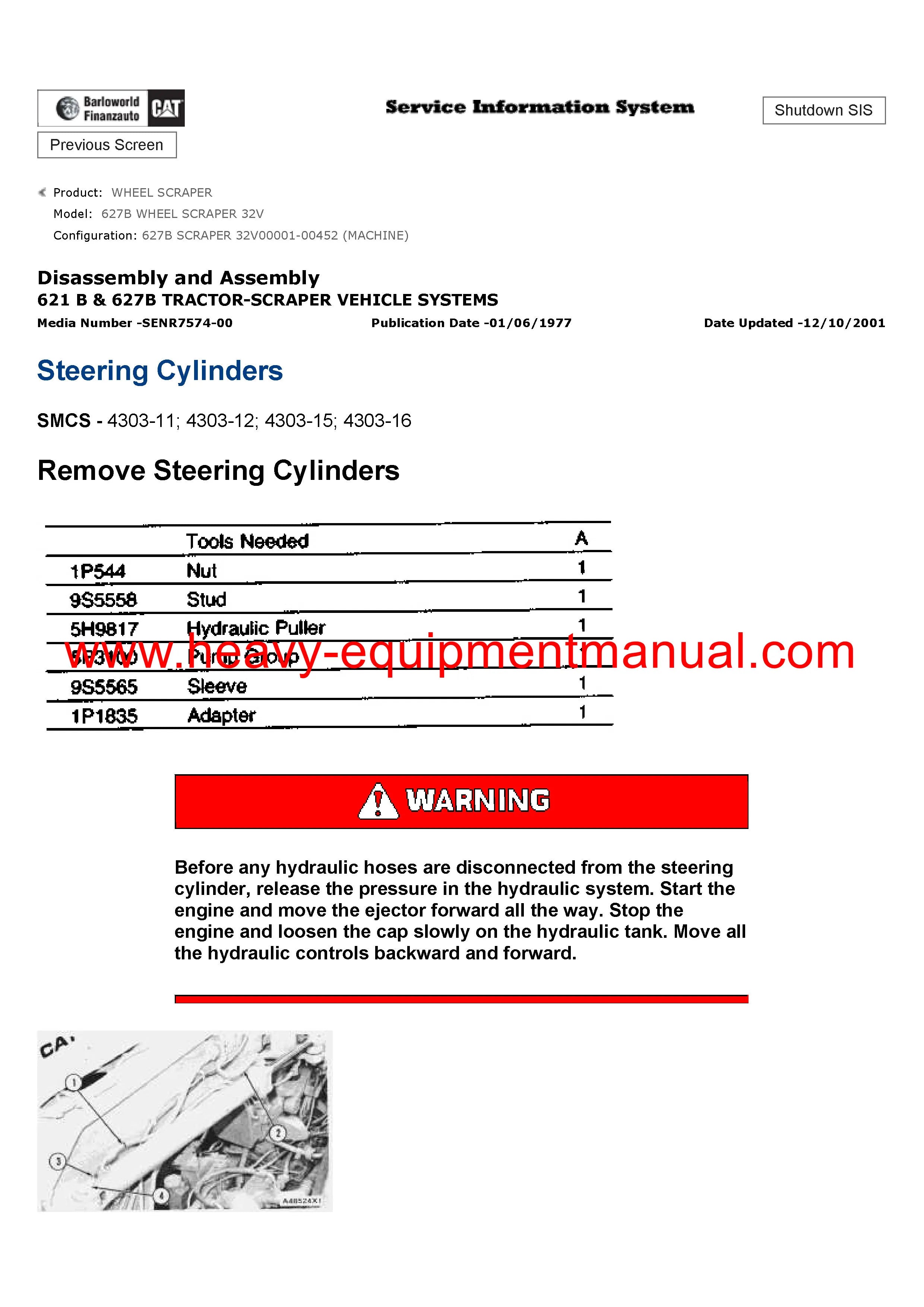 It is Complete Original Factory for Caterpillar 627B WHEEL SCRAPER. Covers all the service and repair information about Caterpillar 627B WHEEL SCRAPER. The information in this manual covers everything you need to know when you want to service and repair Caterpillar 627B WHEEL SCRAPER.