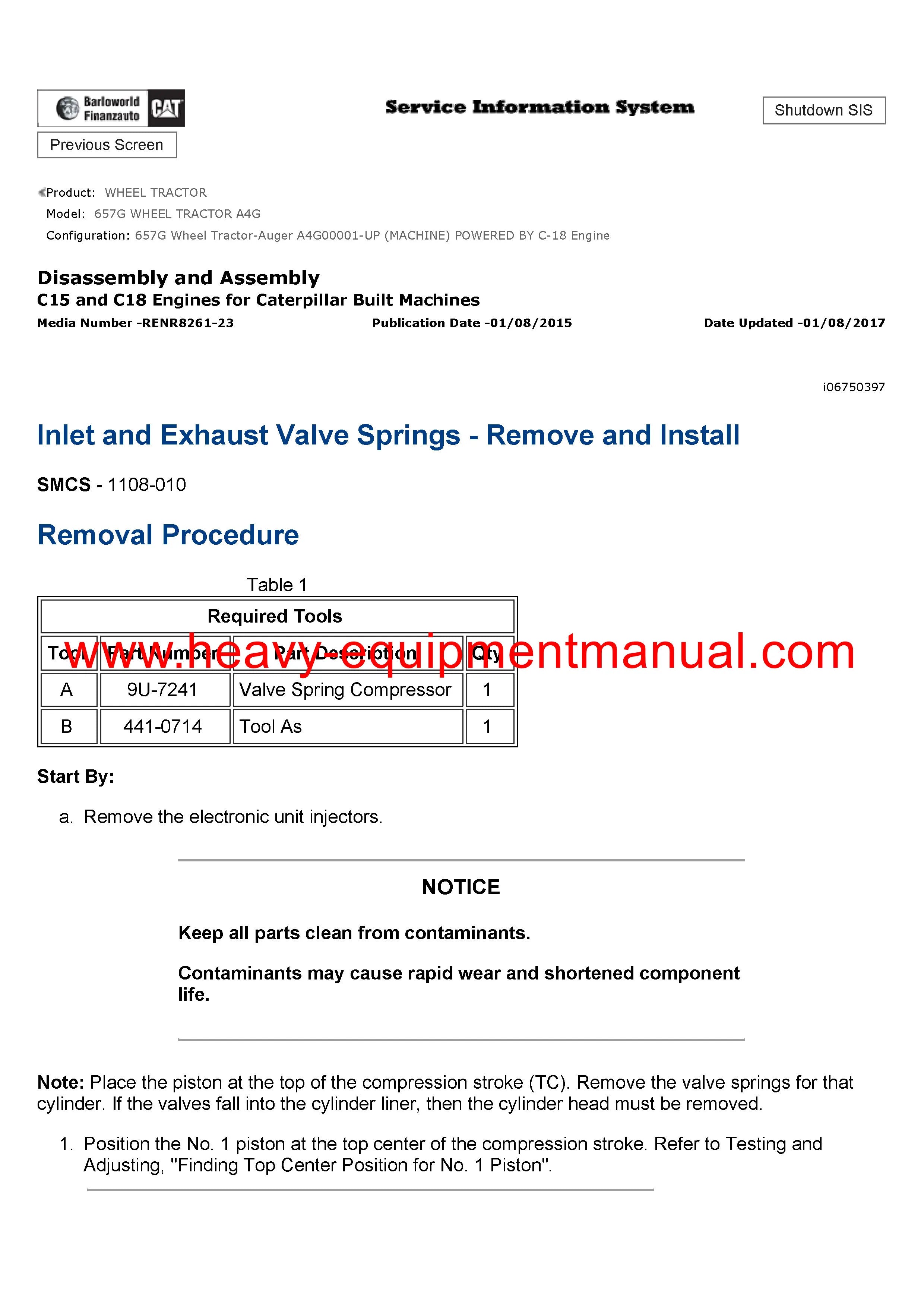 It is Complete Original Factory for Caterpillar 657G WHEEL TRACTOR. Covers all the service and repair information about Caterpillar 657G WHEEL TRACTOR. The information in this manual covers everything you need to know when you want to service and repair Caterpillar 657G WHEEL TRACTOR.