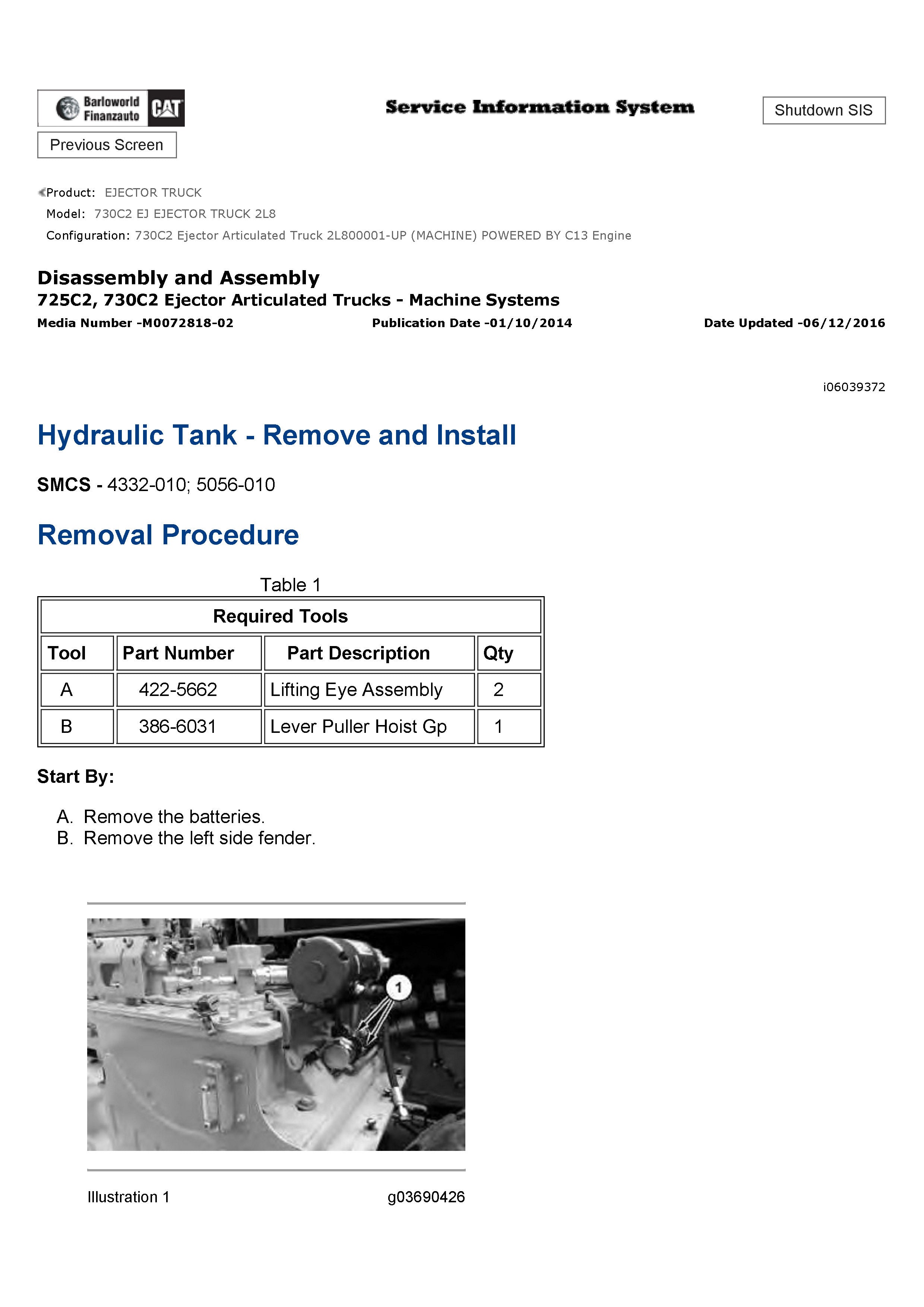 Caterpillar 730C2 EJ Ejector Truck General Service Information