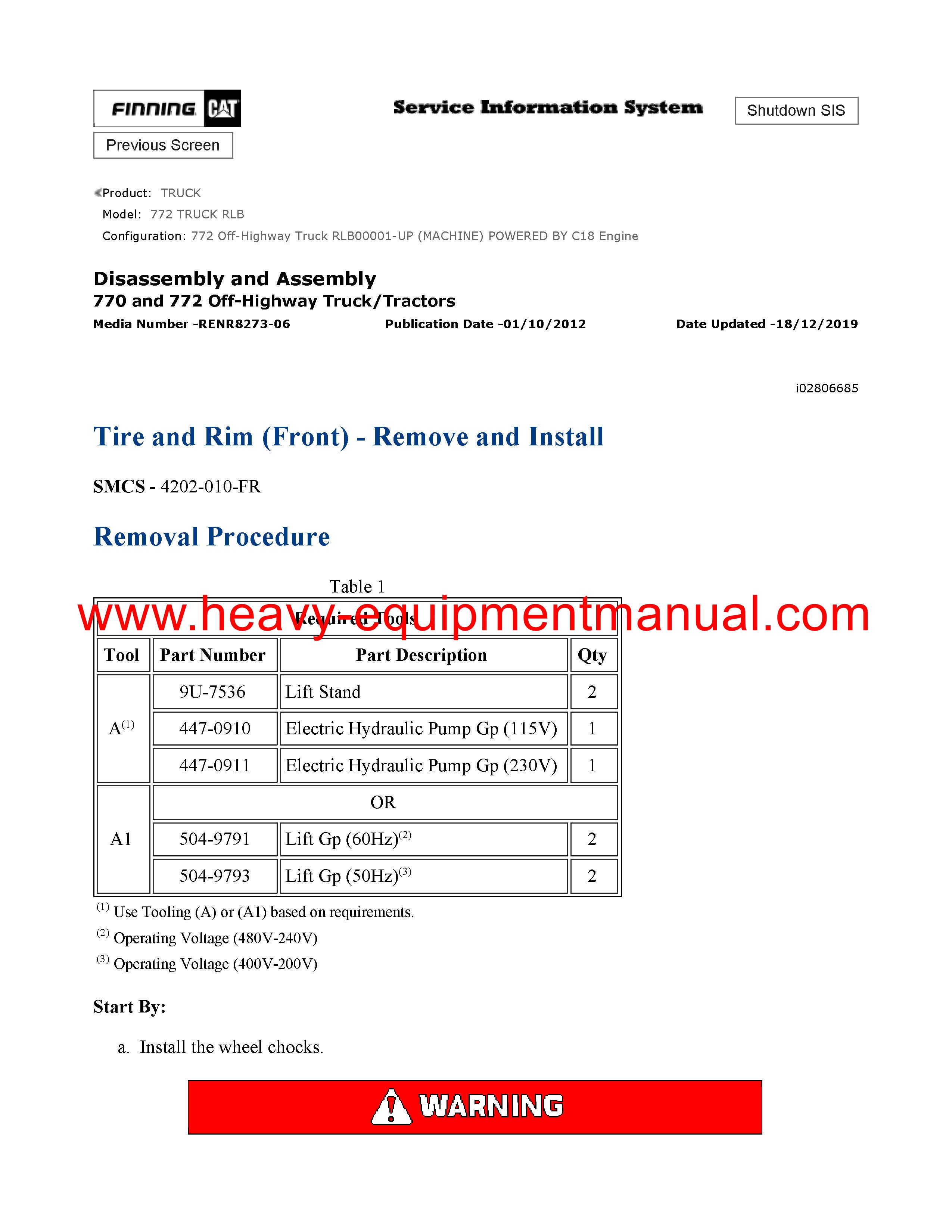 It is Complete Original Factory for Caterpillar 772 Truck covers all the service and repair information about Caterpillar 772 Truck. The information in this manual covers everything you need to know when you want to repair Caterpillar 772 Truck.