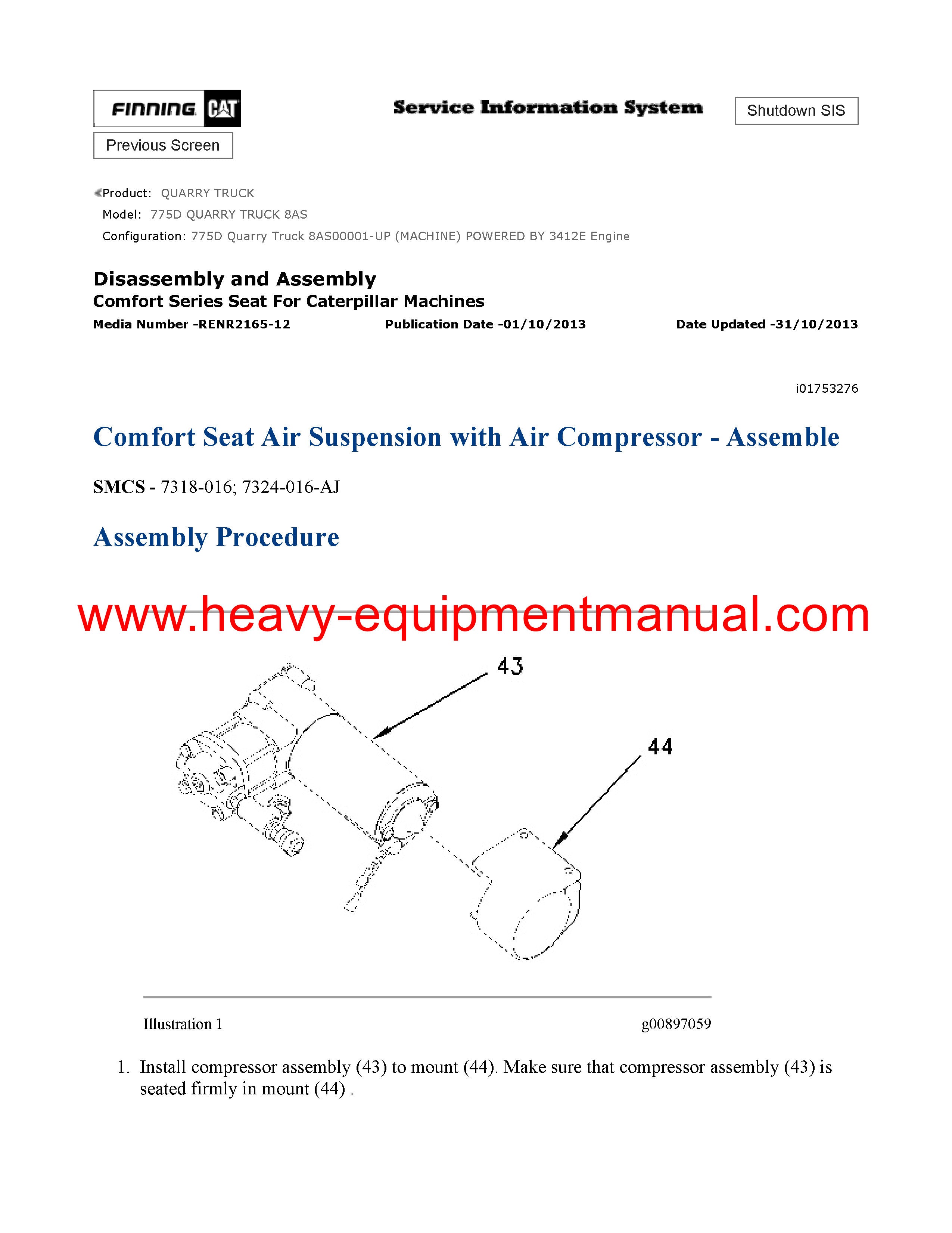 It is Complete Original Factory for Caterpillar 775D Quarry Truck covers all the service and repair information about Caterpillar 775D Quarry Truck. The information in this manual covers everything you need to know when you want to repair Caterpillar 775D Quarry Truck.