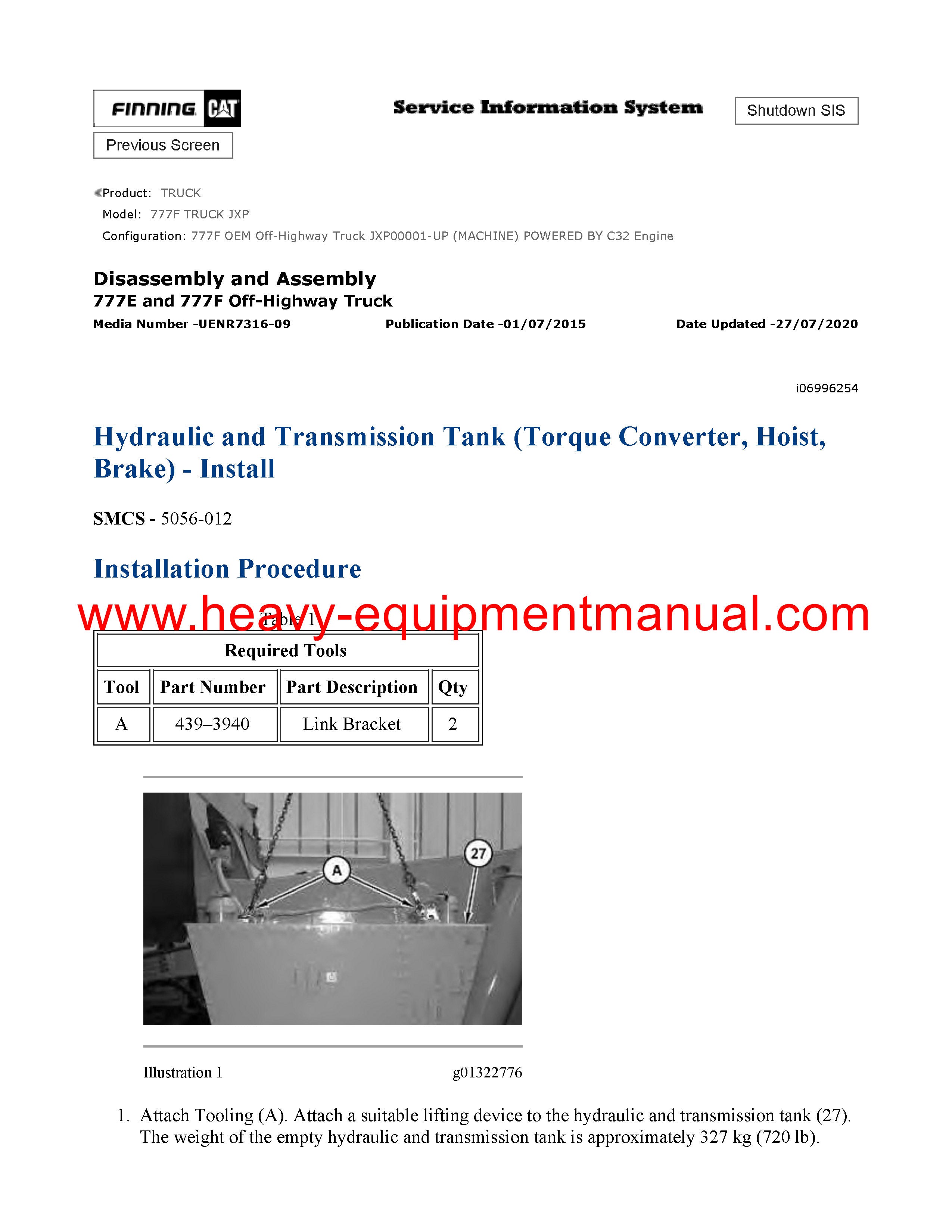 It is Complete Original Factory for Caterpillar 777F Truck covers all the service and repair information about Caterpillar 777F Truck. The information in this manual covers everything you need to know when you want to repair Caterpillar 777F Truck.
