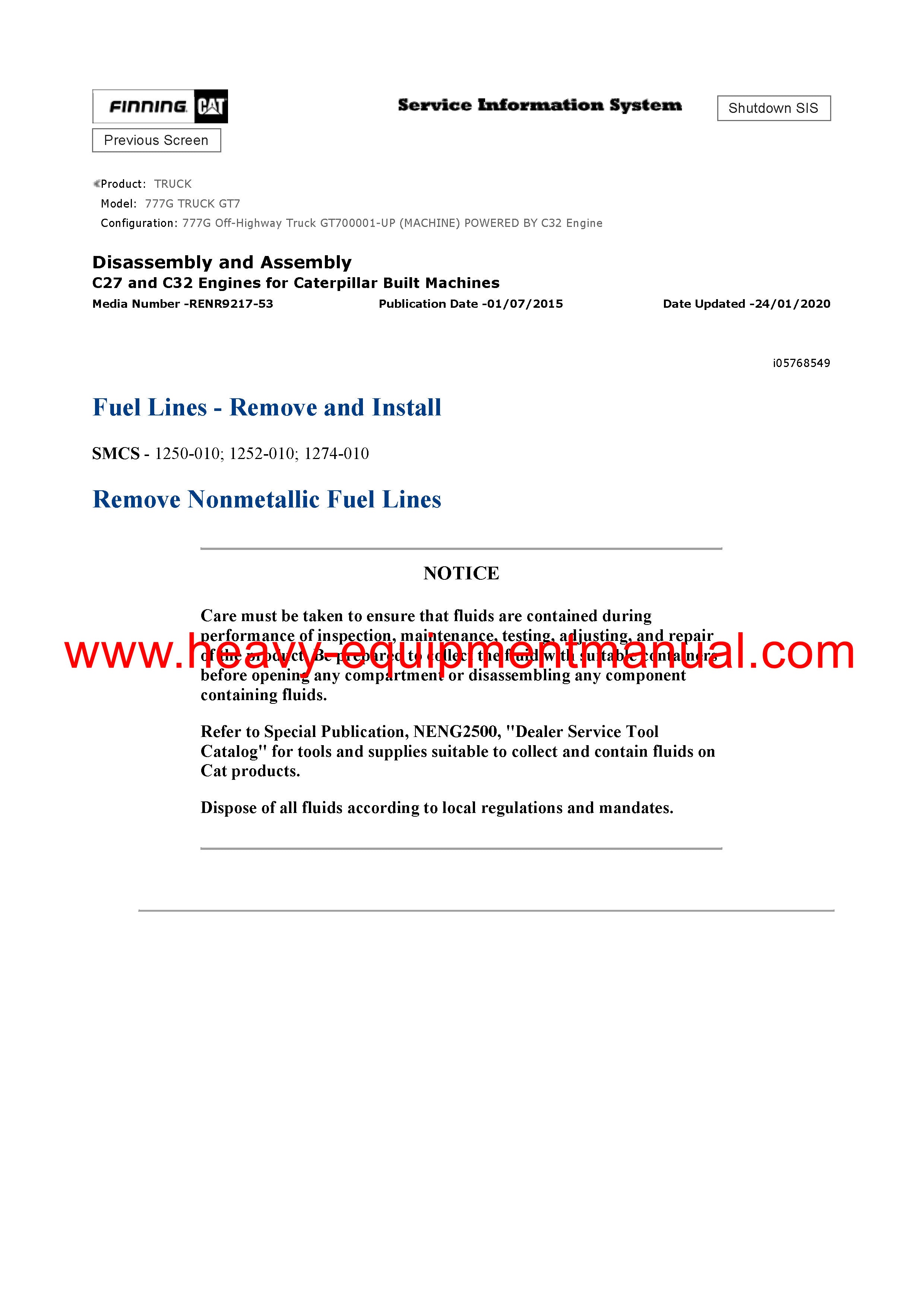 Caterpillar 777G Truck General Service Information