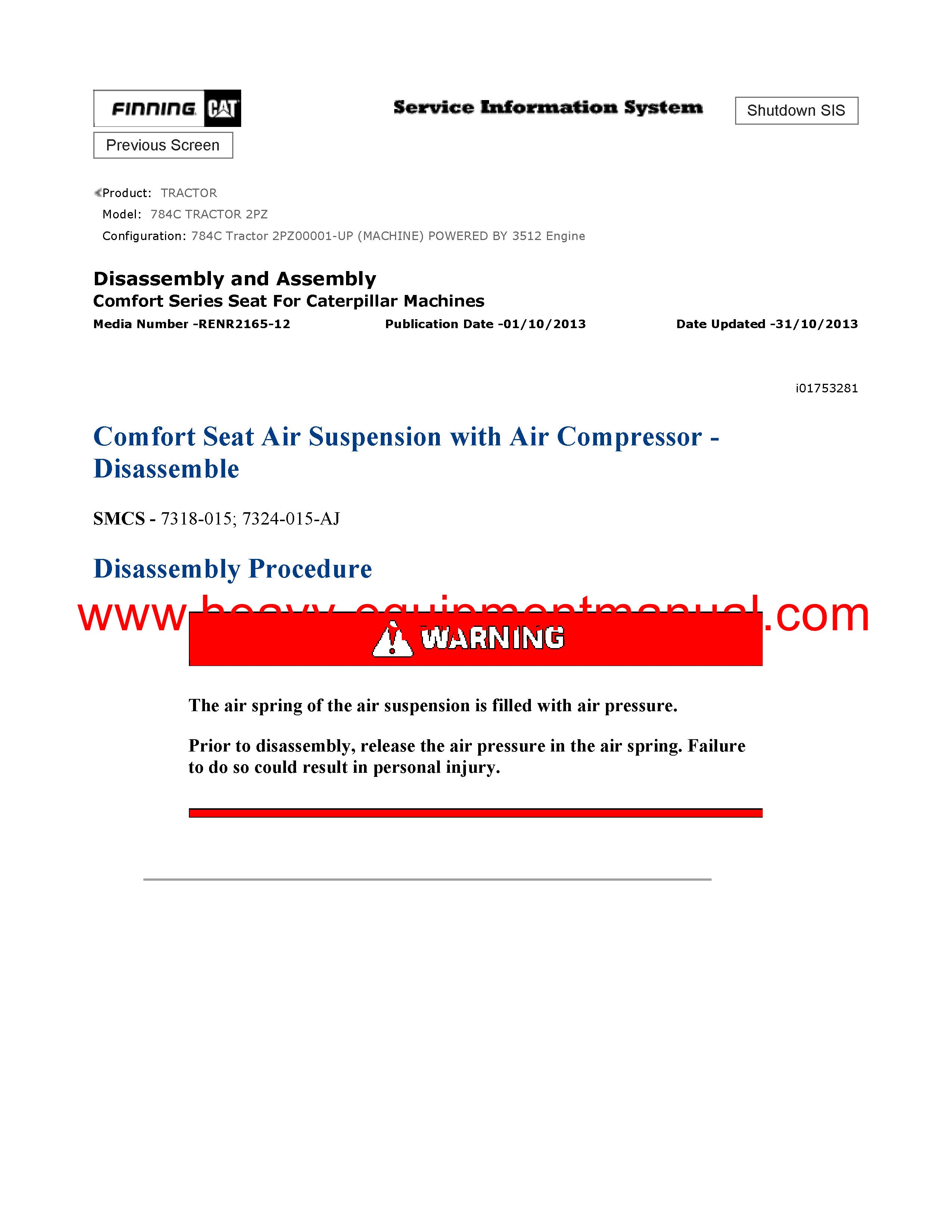 It is Complete Original Factory for Caterpillar 784C Tractor covers all the service and repair information about Caterpillar 784C Tractor. The information in this manual covers everything you need to know when you want to repair Caterpillar 784C Tractor.
