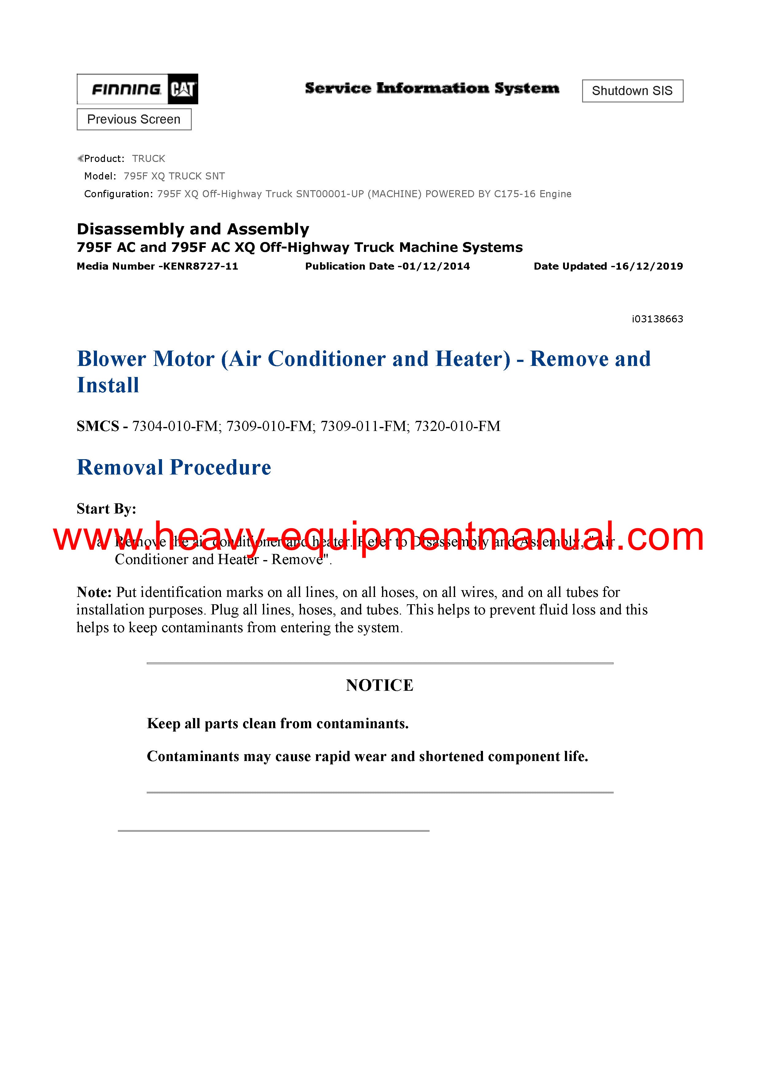 It is Complete Original Factory for Caterpillar 795F XQ Truck covers all the service and repair information about Caterpillar 795F XQ Truck. The information in this manual covers everything you need to know when you want to repair Caterpillar 795F XQ Truck.