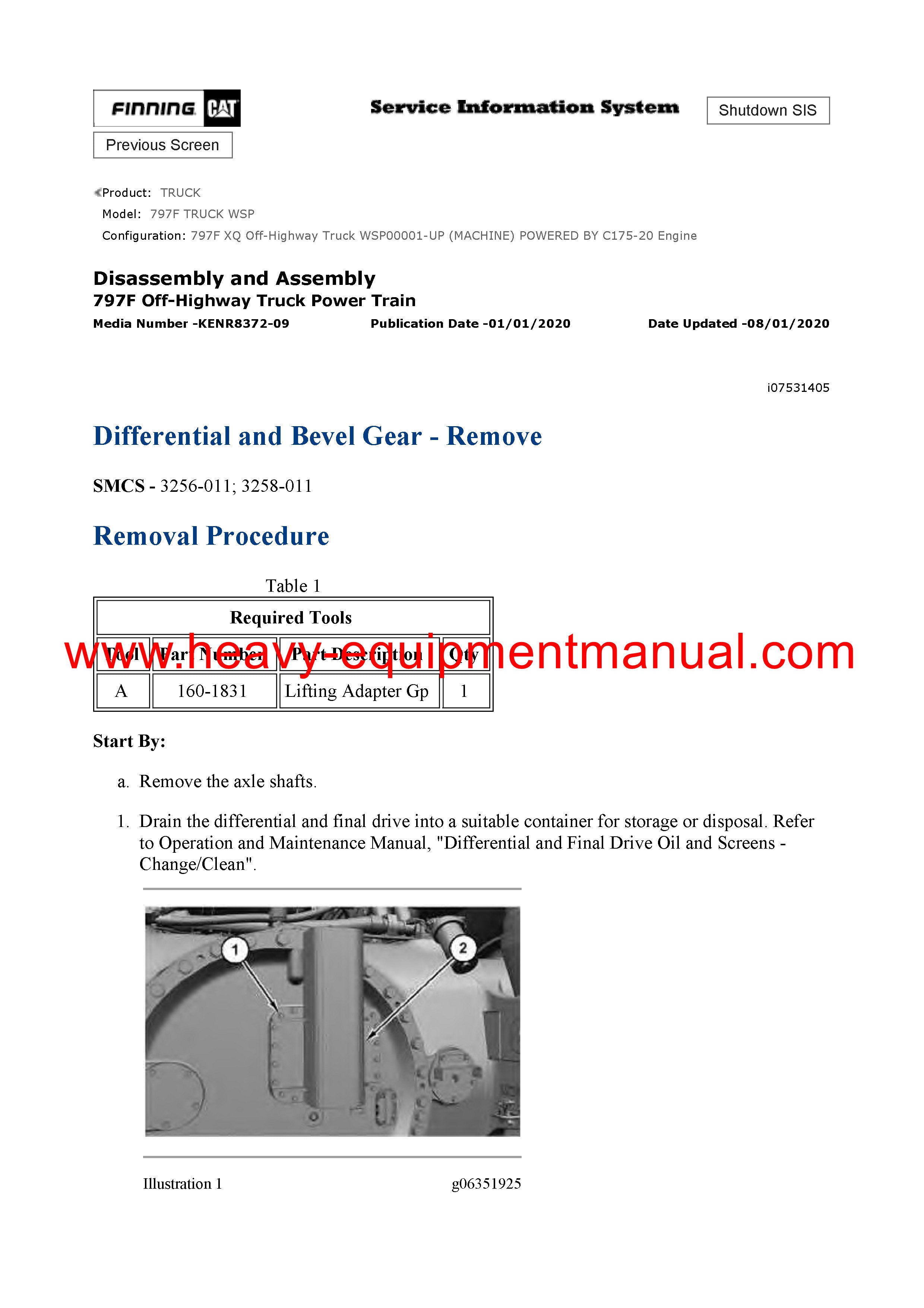 It is Complete Original Factory for Caterpillar 797F Truck covers all the service and repair information about Caterpillar 797F Truck. The information in this manual covers everything you need to know when you want to repair Caterpillar 797F Truck.