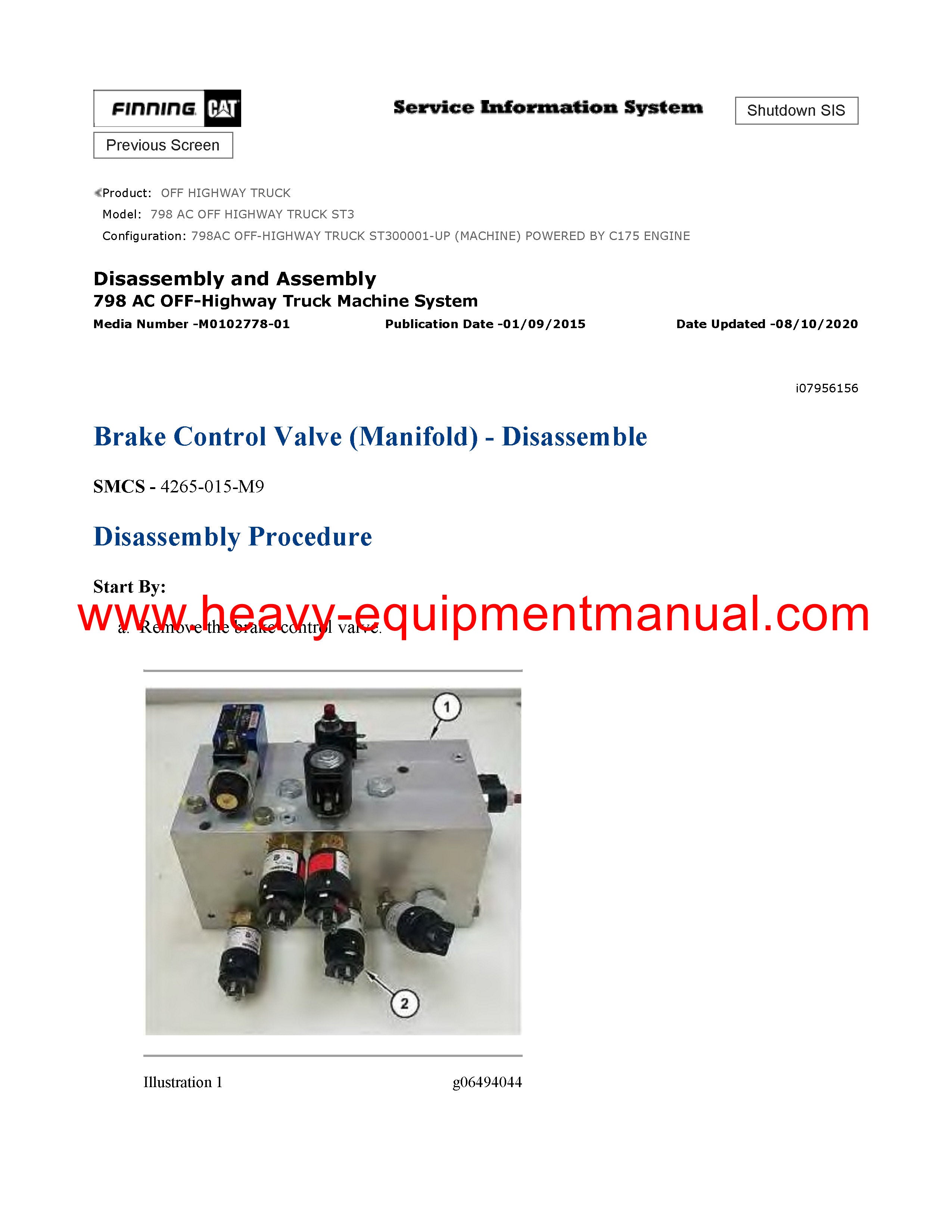 It is Complete Original Factory for Caterpillar 798 AC Off Highway Truck covers all the service and repair information about Caterpillar 798 AC Off Highway Truck. The information in this manual covers everything you need to know when you want to repair Caterpillar 798 AC Off Highway Truck.
