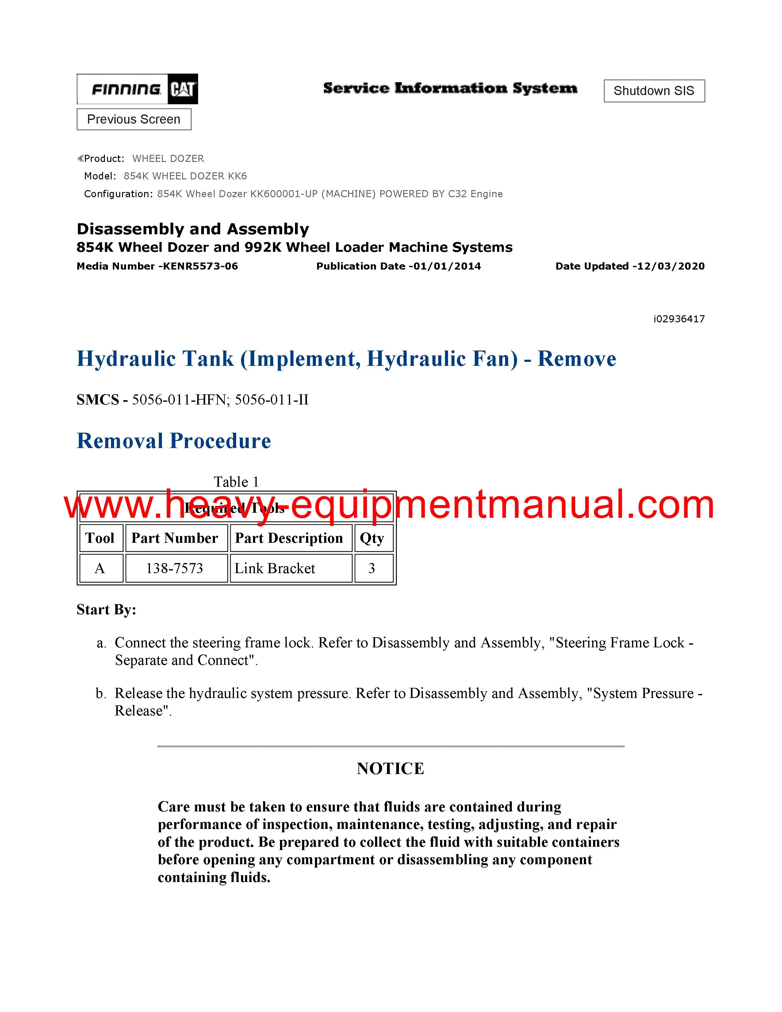 It is Complete Original Factory for Caterpillar 854K WHEEL DOZER. Covers all the service and repair information about Caterpillar 854K WHEEL DOZER. The information in this manual covers everything you need to know when you want to service and repair Caterpillar 854K WHEEL DOZER.