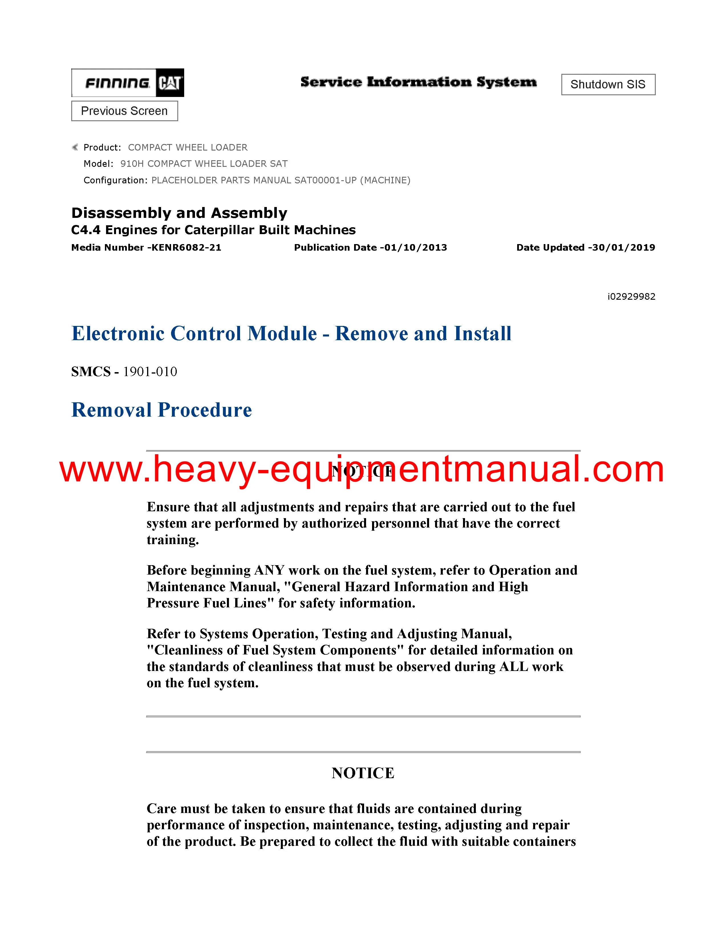 It is Complete Original Factory for Caterpillar 910H COMPACT WHEEL LOADER. Covers all the service and repair information about Caterpillar 910H COMPACT WHEEL LOADER. The information in this manual covers everything you need to know when you want to service and repair Caterpillar 910H COMPACT WHEEL LOADER.