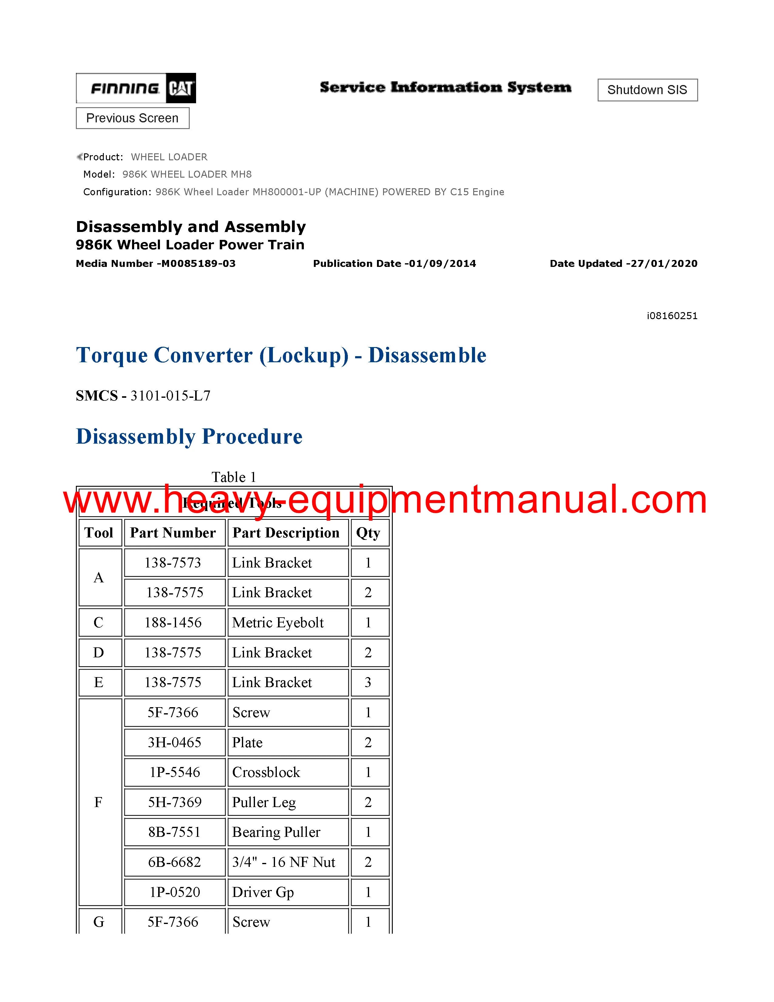 It is Complete Original Factory for Caterpillar 986K WHEEL LOADER. Covers all the service and repair information about Caterpillar 986K WHEEL LOADER. The information in this manual covers everything you need to know when you want to service and repair Caterpillar 986K WHEEL LOADER.