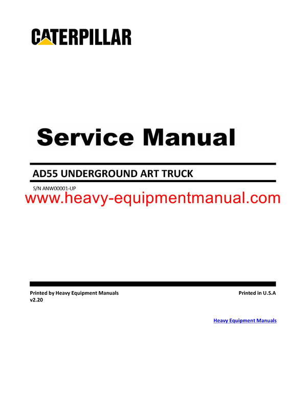 It is Complete Original Factory for Caterpillar AD55 UNDERGROUND ART TRUCK. Covers all the service and repair information about Caterpillar AD55 UNDERGROUND ART TRUCK. The information in this manual covers everything you need to know when you want to service and repair Caterpillar AD55 UNDERGROUND ART TRUCK.