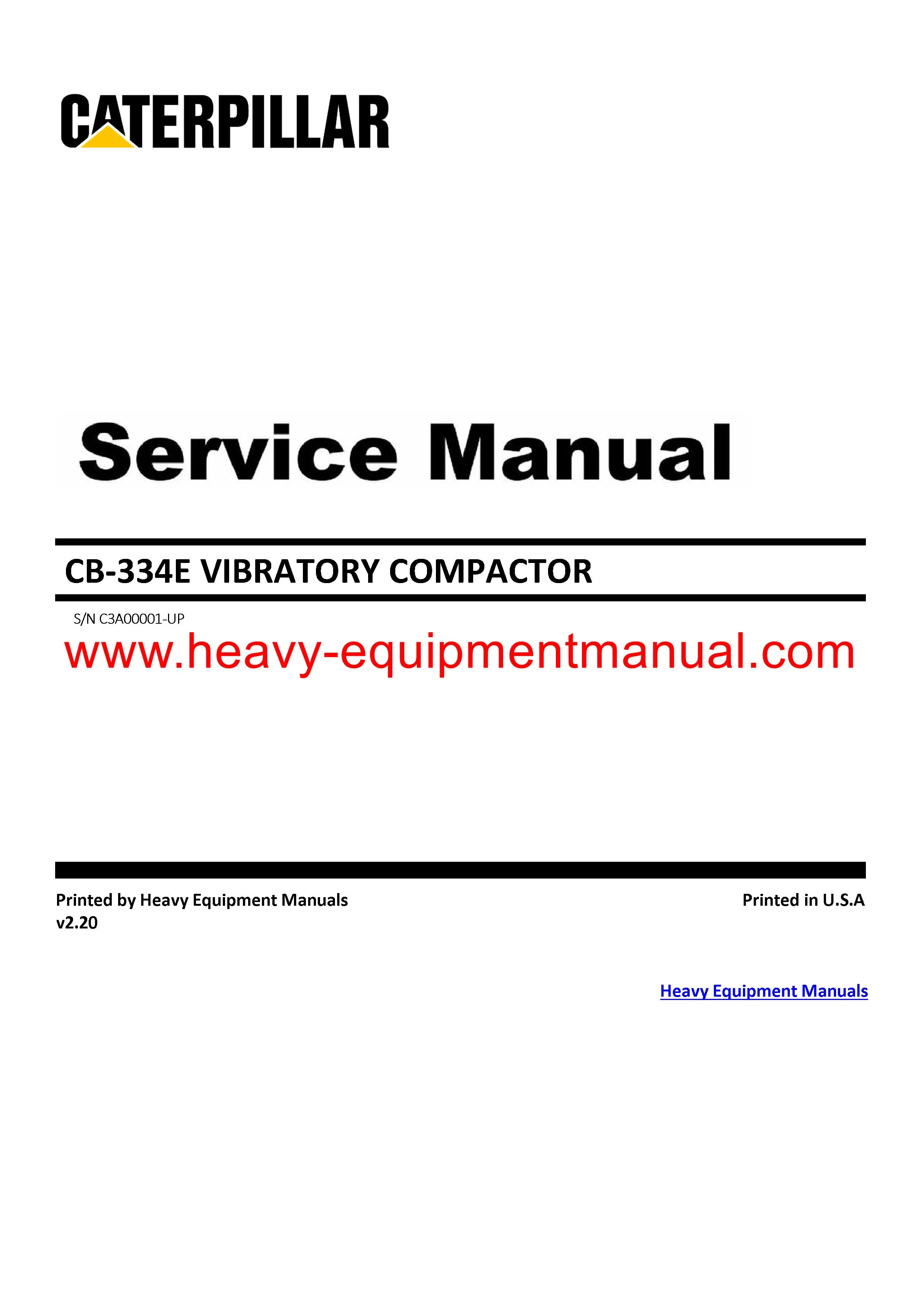 It is Complete Original Factory for Caterpillar CB-334E VIBRATORY COMPACTOR. Covers all the service and repair information about Caterpillar CB-334E VIBRATORY COMPACTOR. The information in this manual covers everything you need to know when you want to service and repair Caterpillar CB-334E VIBRATORY COMPACTOR.