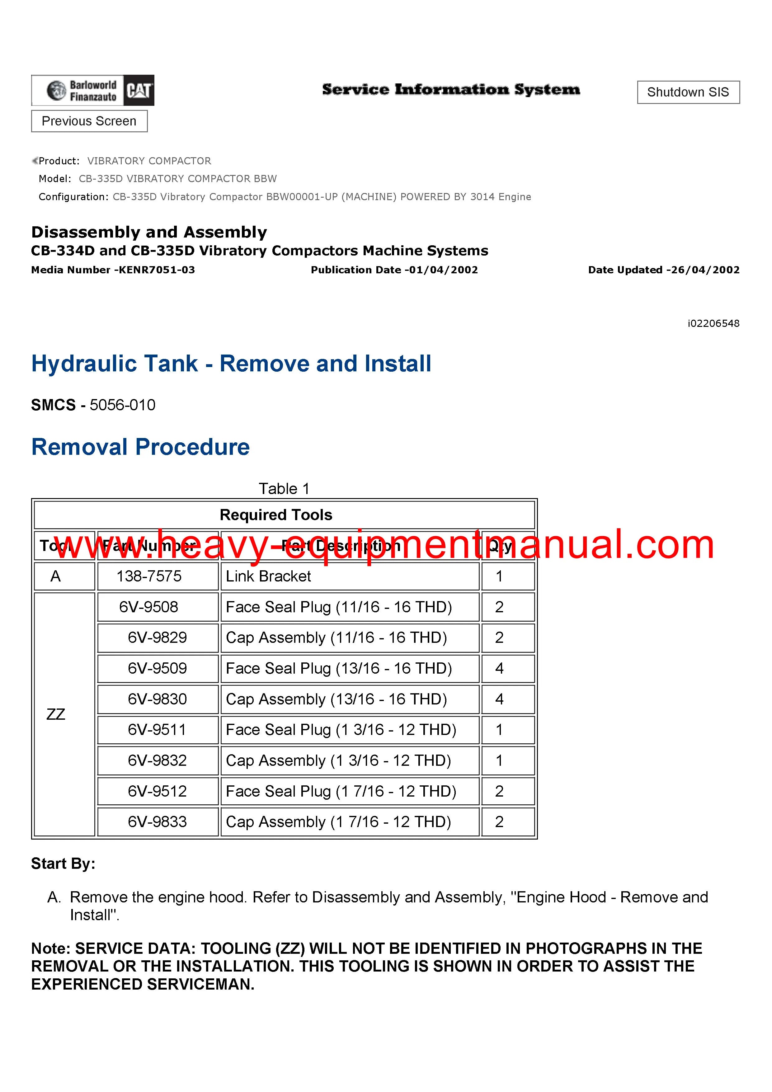 Caterpillar CB-335D VIBRATORY COMPACTOR General Service Information