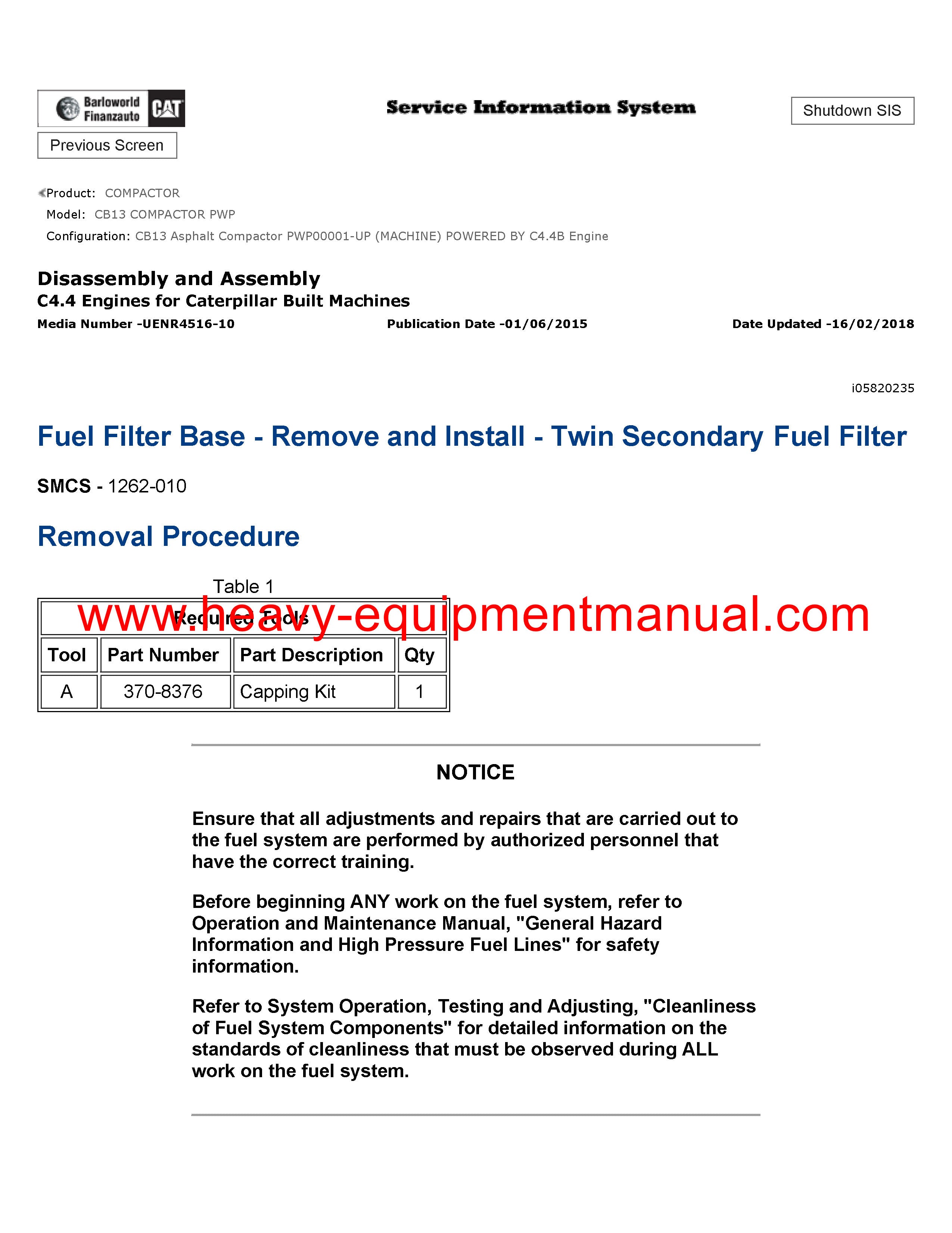 It is Complete Original Factory for Caterpillar CB13 COMPACTOR. Covers all the service and repair information about Caterpillar CB13 COMPACTOR. The information in this manual covers everything you need to know when you want to service and repair Caterpillar CB13 COMPACTOR.
