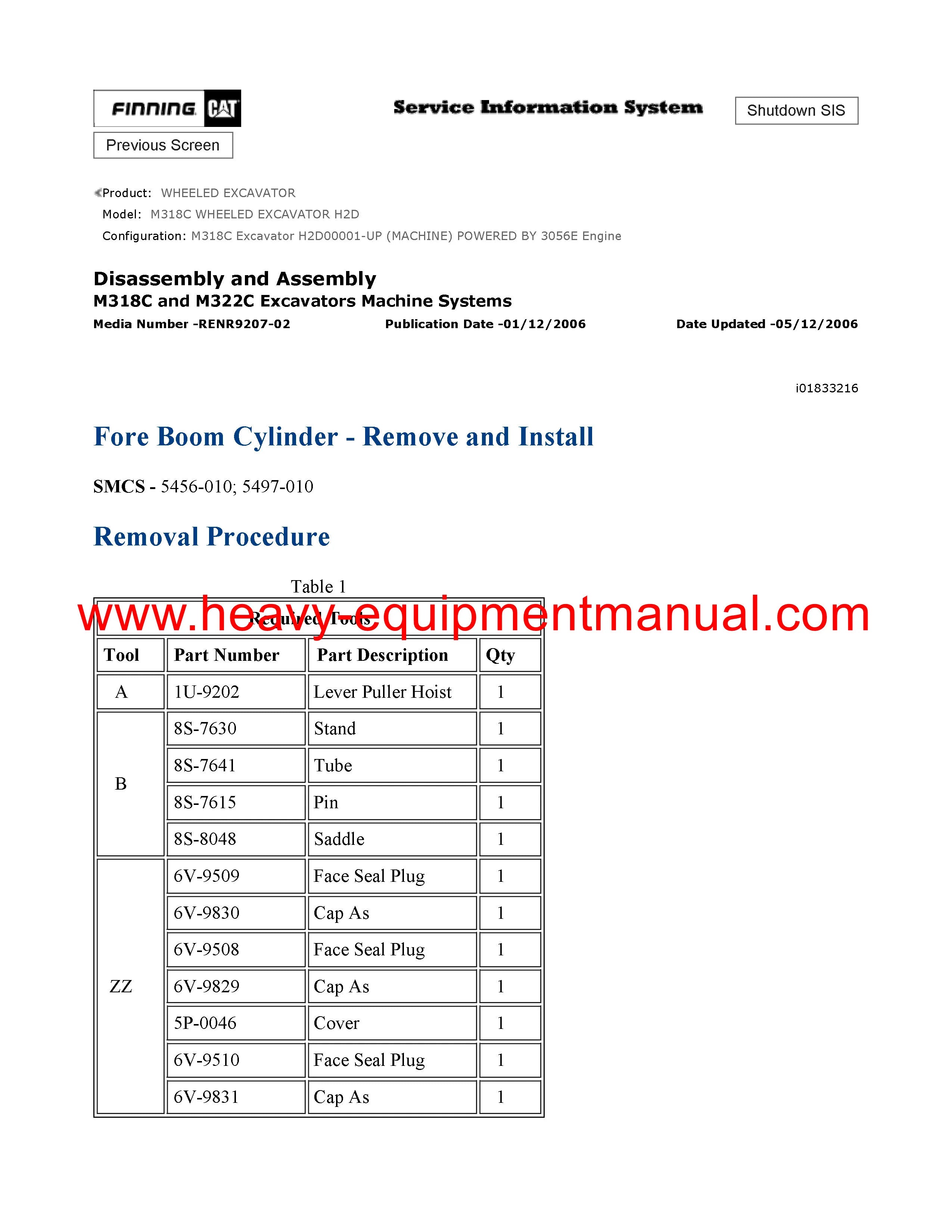 Caterpillar M318C WHEELED EXCAVATOR Disassembly and Assembly Manual