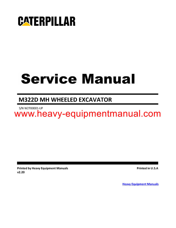 It is Complete Original Factory for Caterpillar M322D MH WHEELED EXCAVATOR. Covers all the service and repair information about Caterpillar M322D MH WHEELED EXCAVATOR. The information in this manual covers everything you need to know when you want to service and repair Caterpillar M322D MH WHEELED EXCAVATOR.