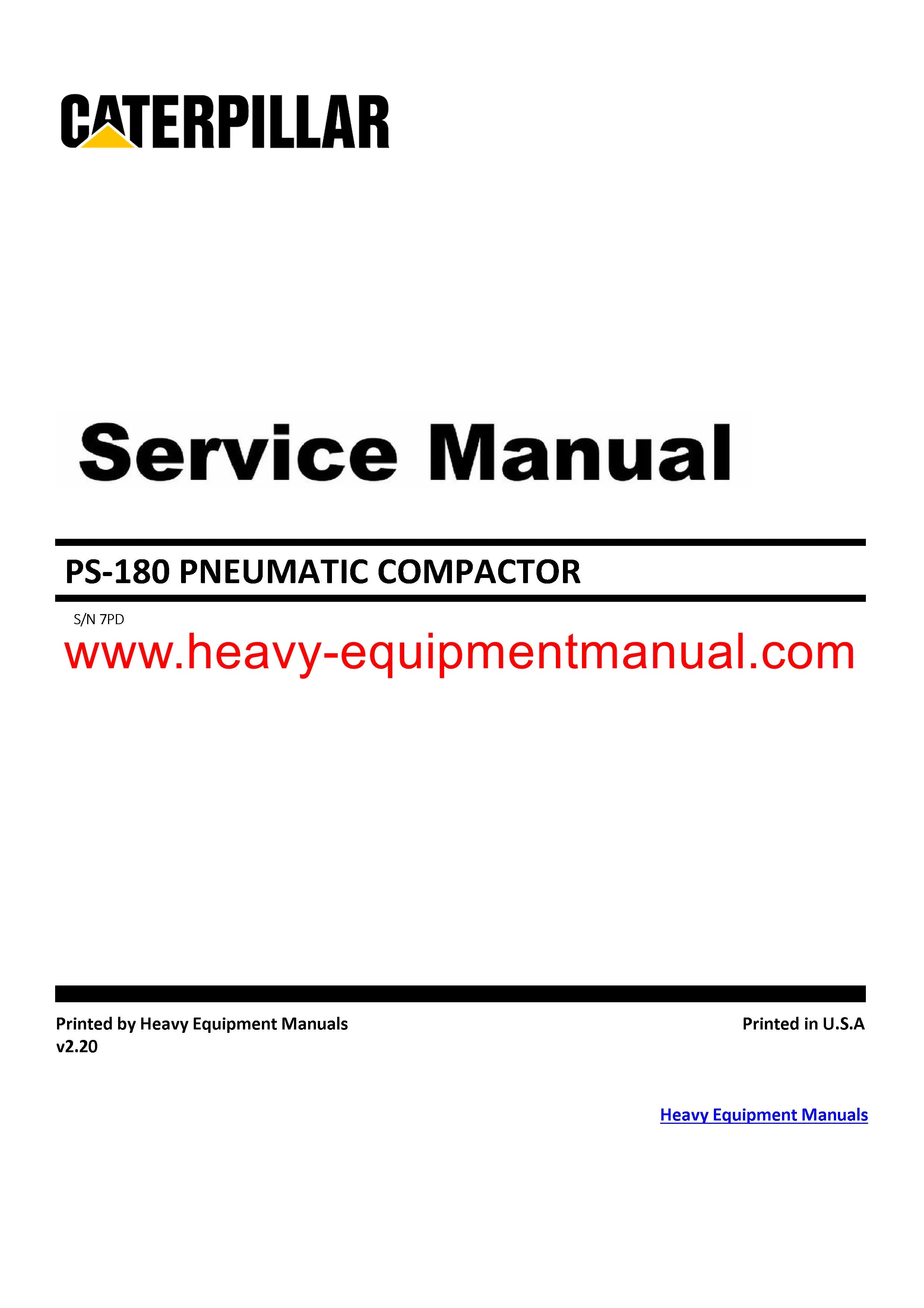 It is Complete Original Factory for Caterpillar PS-180 PNEUMATIC COMPACTOR. Covers all the service and repair information about Caterpillar PS-180 PNEUMATIC COMPACTOR. The information in this manual covers everything you need to know when you want to service and repair Caterpillar PS-180 PNEUMATIC COMPACTOR.