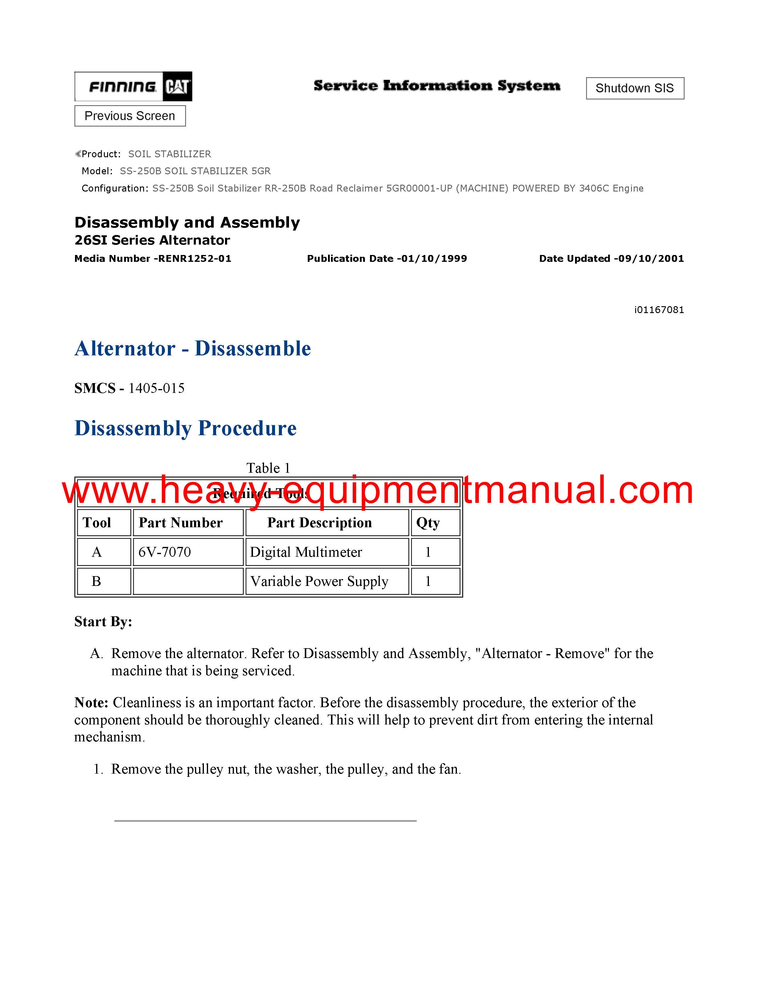 It is Complete Original Factory for Caterpillar SS-250B SOIL STABILIZER. Covers all the service and repair information about Caterpillar SS-250B SOIL STABILIZER. The information in this manual covers everything you need to know when you want to service and repair Caterpillar SS-250B SOIL STABILIZER.