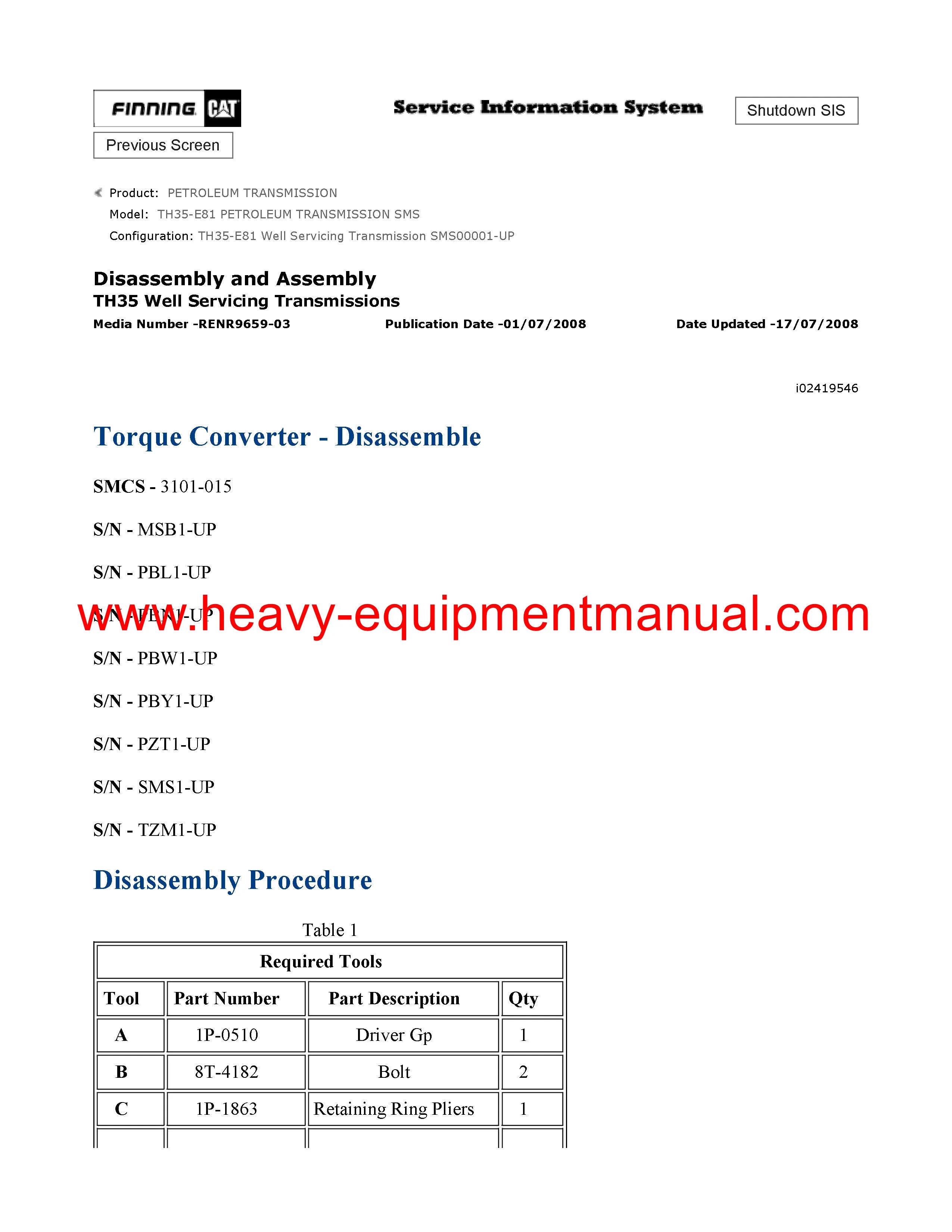 Caterpillar TH35-E81 PETROLEUM TRANSMISSION Disassembly and Assembly