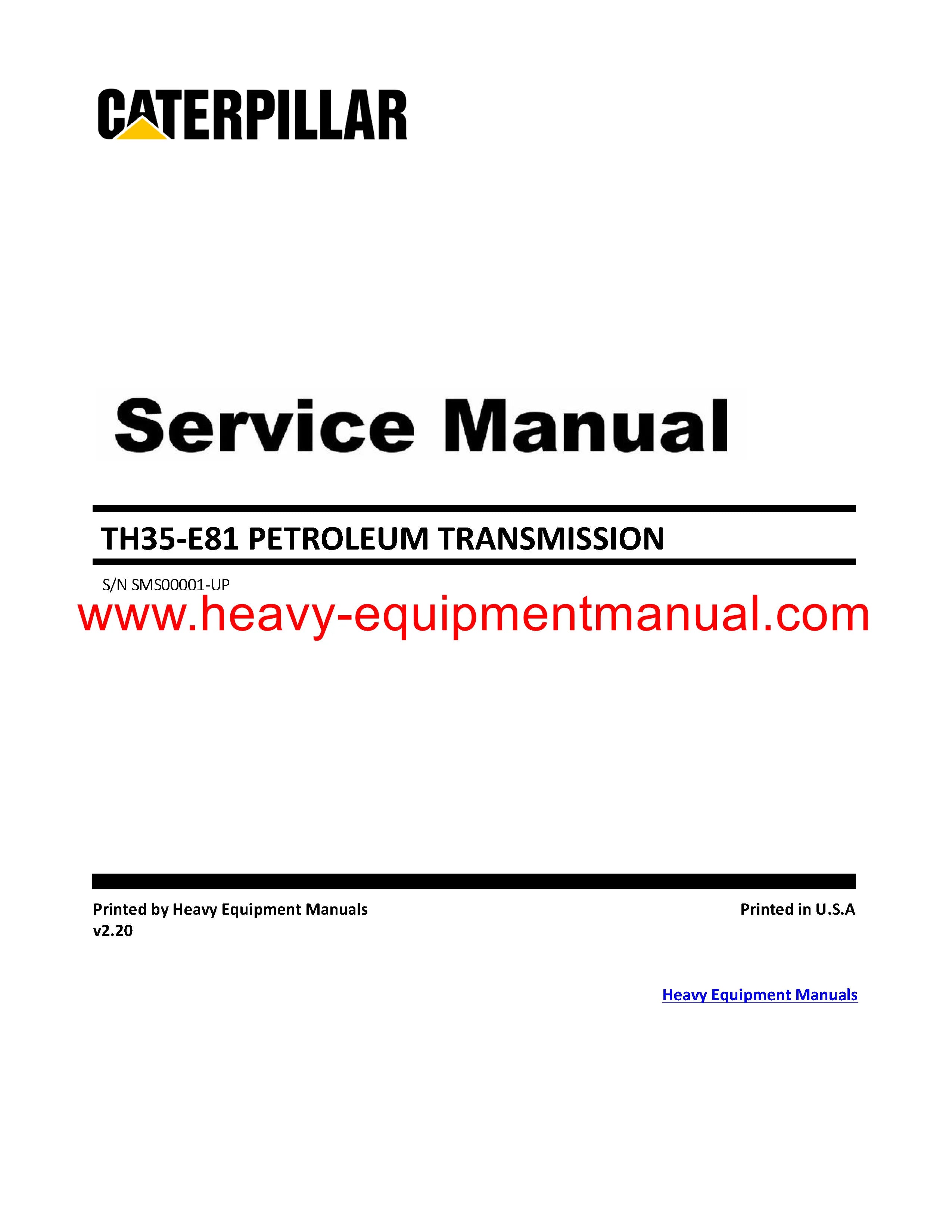 It is Complete Original Factory for Caterpillar TH35-E81 PETROLEUM TRANSMISSION. Covers all the service and repair information about Caterpillar TH35-E81 PETROLEUM TRANSMISSION. The information in this manual covers everything you need to know when you want to service and repair Caterpillar TH35-E81 PETROLEUM TRANSMISSION.