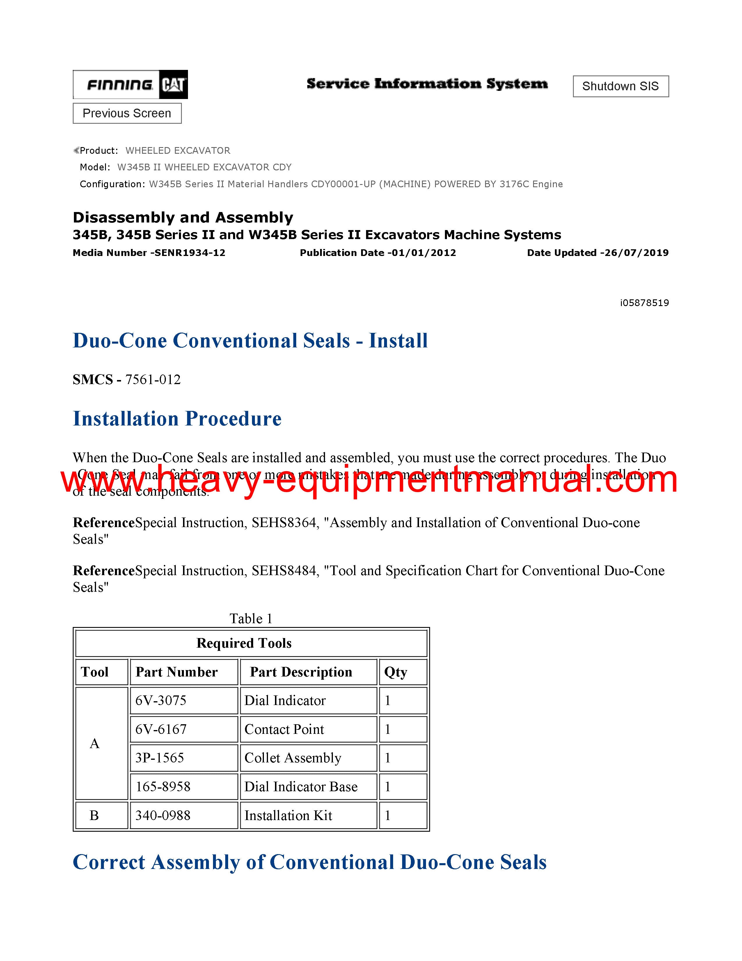 Caterpillar W345B II WHEELED EXCAVATOR General Service Information Manual