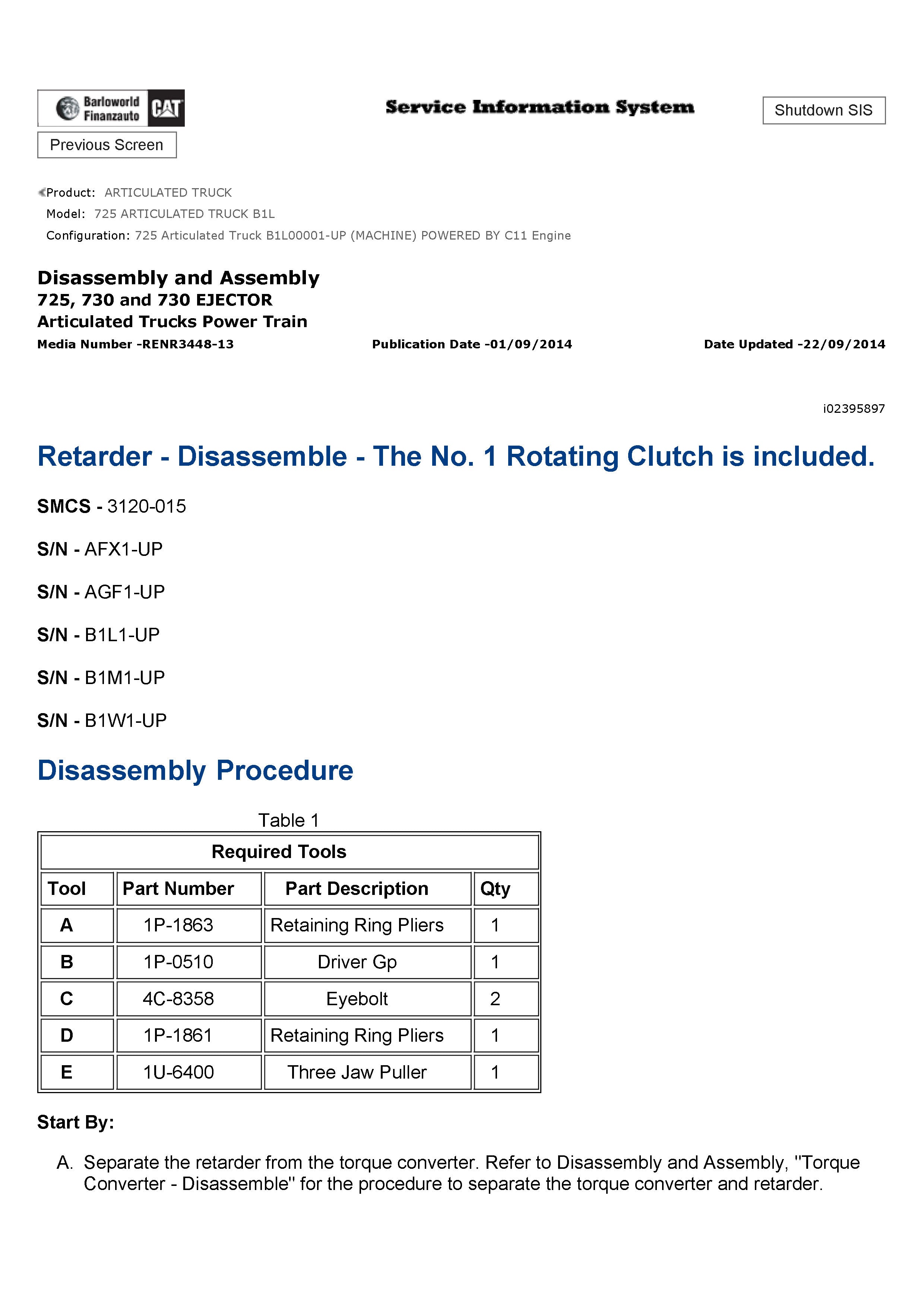 CATERPILLER 725 ARTICULATED TRUCK Disassembly and Assembly