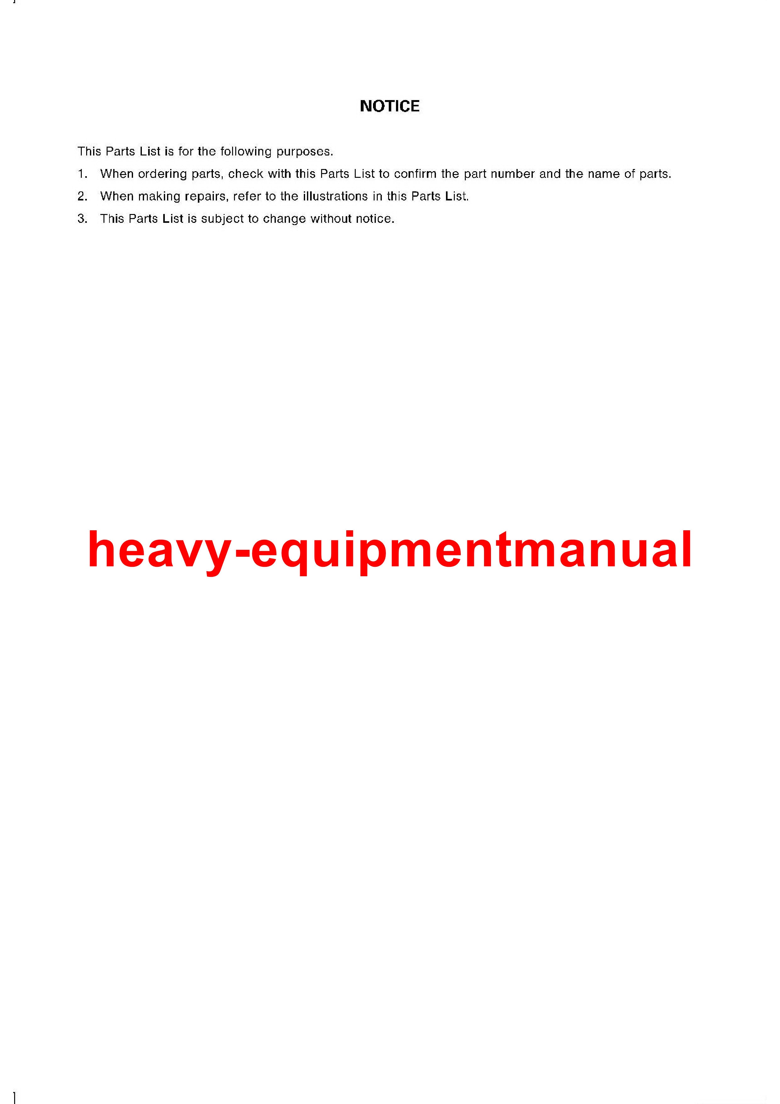 This parts catalog contains parts used for all the machines having machine numbers which match serial numbers of this directory.
