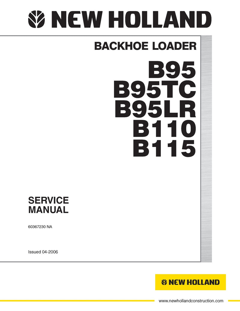 Download New Holland B95 B95TC B95LR B110 B115 BACKHOE LOADER Service Repair Manual 60367230NAR0