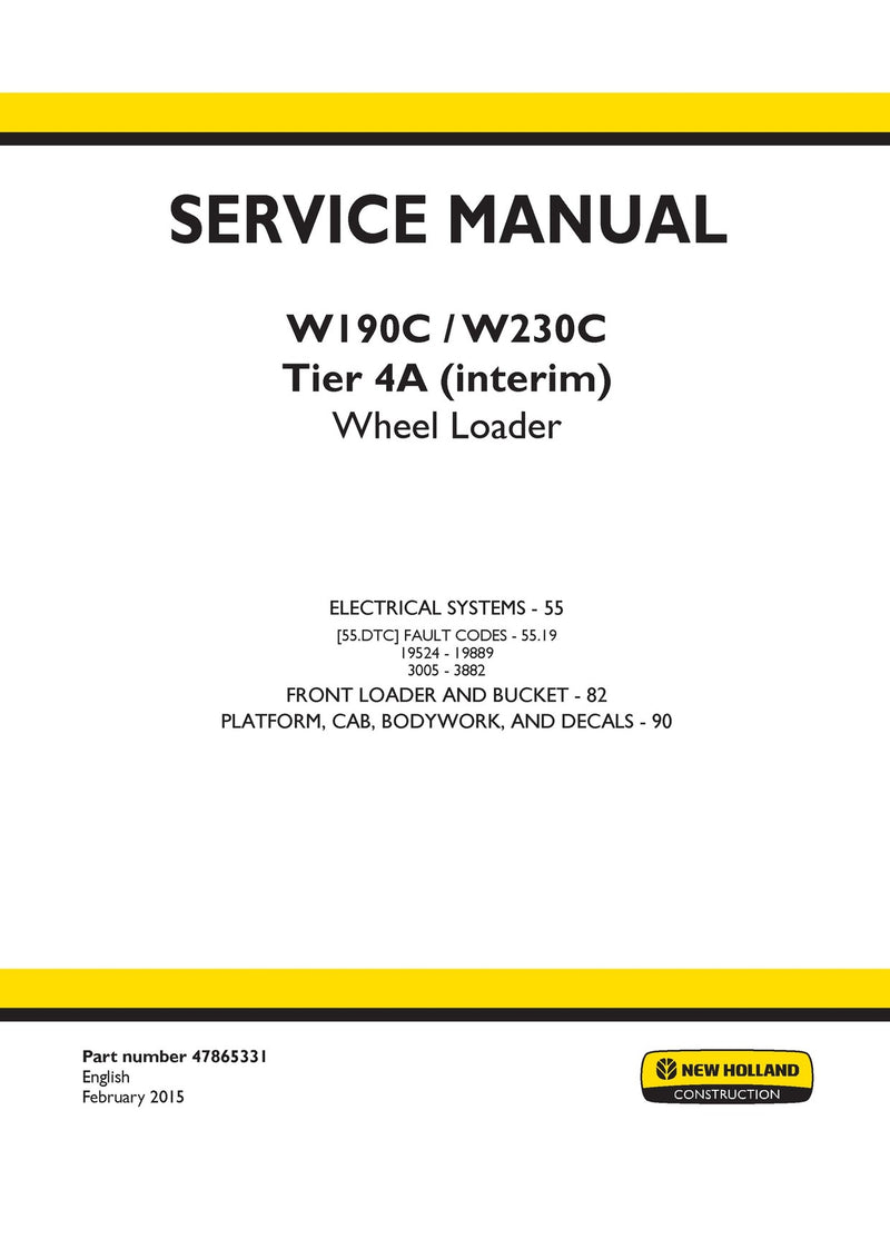 It is Complete Original Factory for New Holland W190C, W230C Tier 4A (interim) Wheel Loader. Covers all the service and repair information about New Holland W190C, W230C Tier 4A (interim) Wheel Loader. The information in this manual covers everything you need to know when you want to service and repair New Holland W190C, W230C Tier 4A (interim) Wheel Loader.