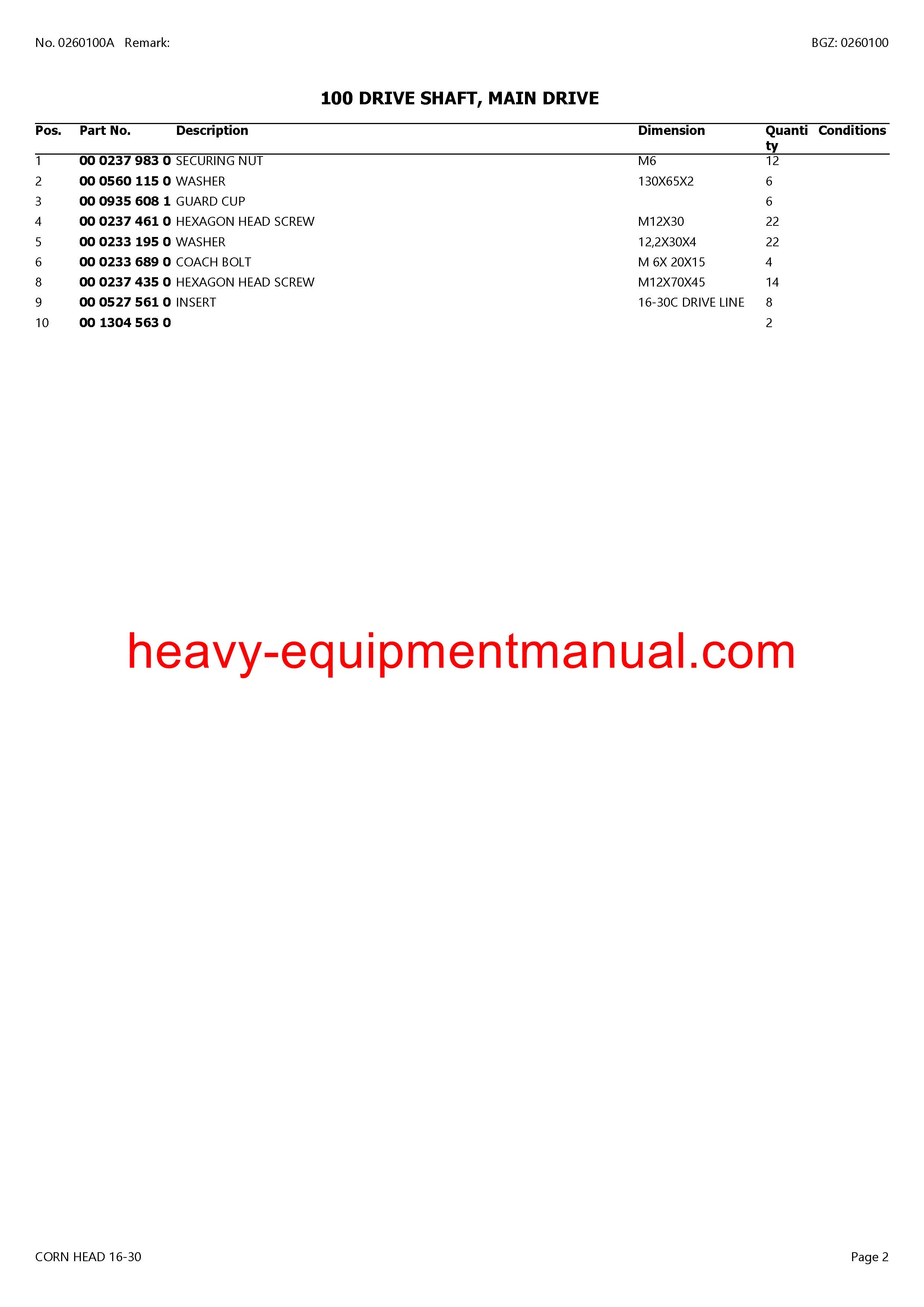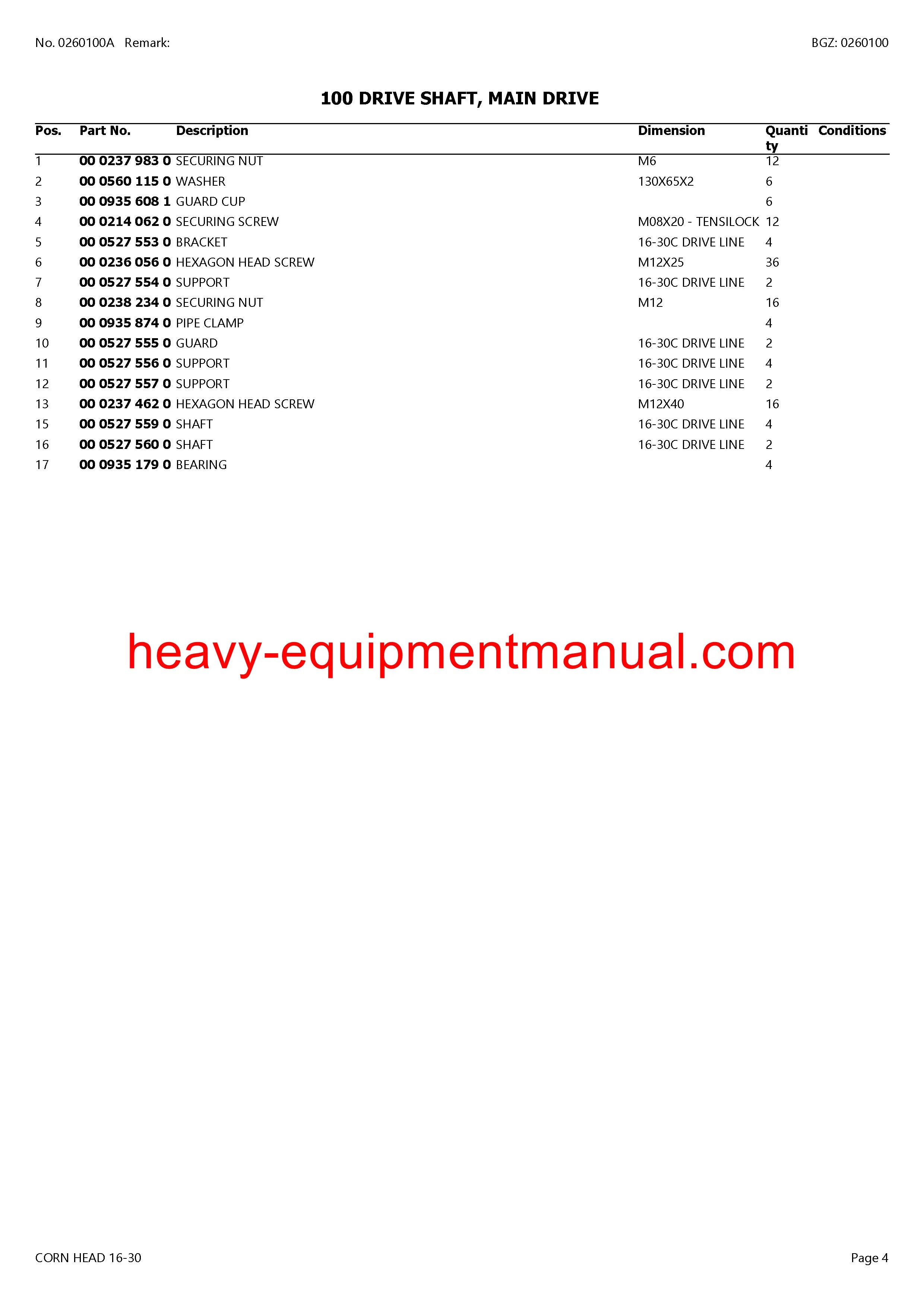 PDF Claas 16 - 30 Corn Head Combine Parts Manual Download