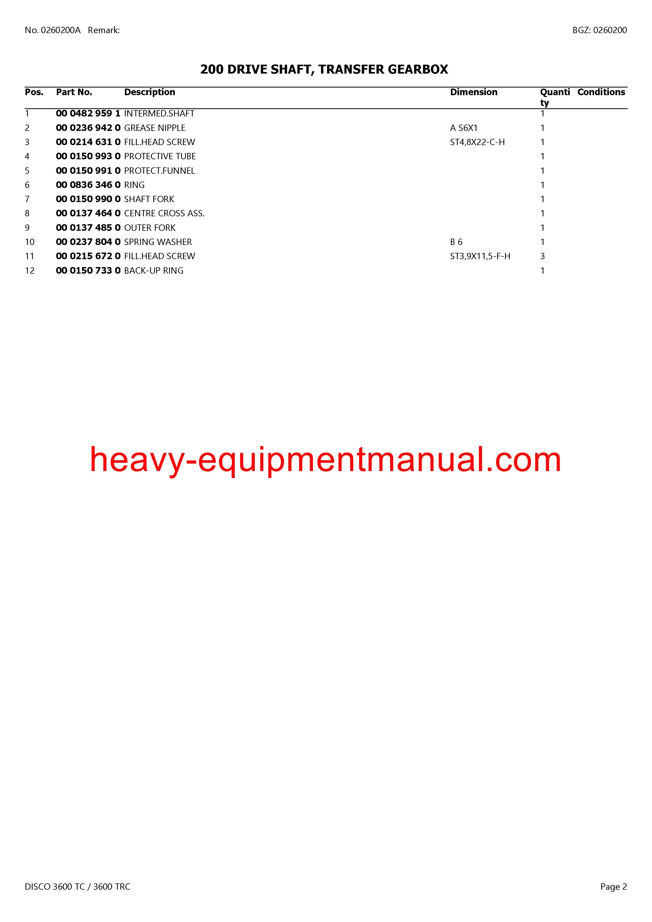PDF Claas 3600 TC / 3600 TRC Disco Mower Parts Manual