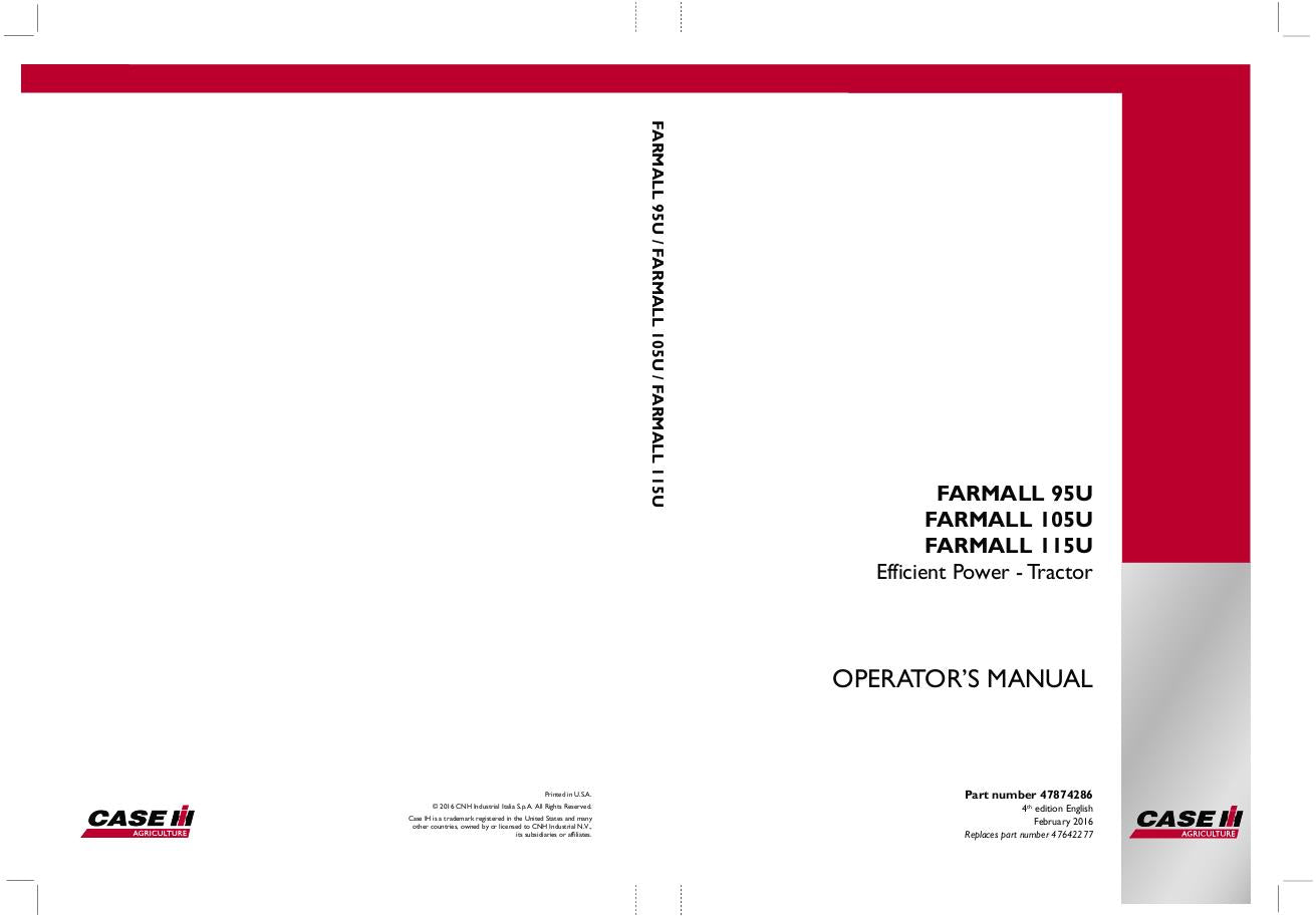 Case IH Tractor FARMALL 95U 105U 115U Operator’s
