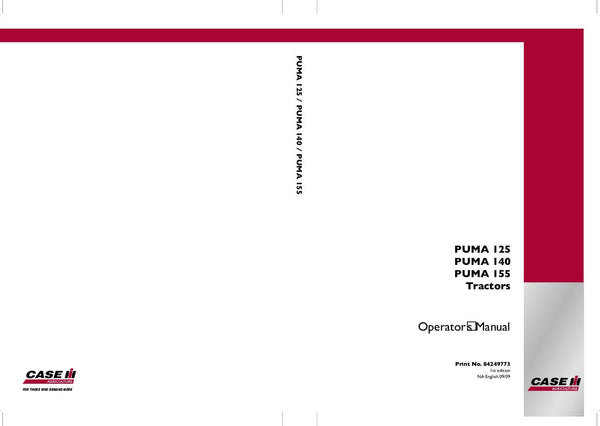 It is an Complete Factory original factory Operator's Manual For Case IH Tractor PUMA 125,140,155. We Offers Manual HIGH quality images, diagrams, instructions to help you to operate. This document is printable, without restrictions, contains searchable text, bookmarks, crosslinks for easy navigation.