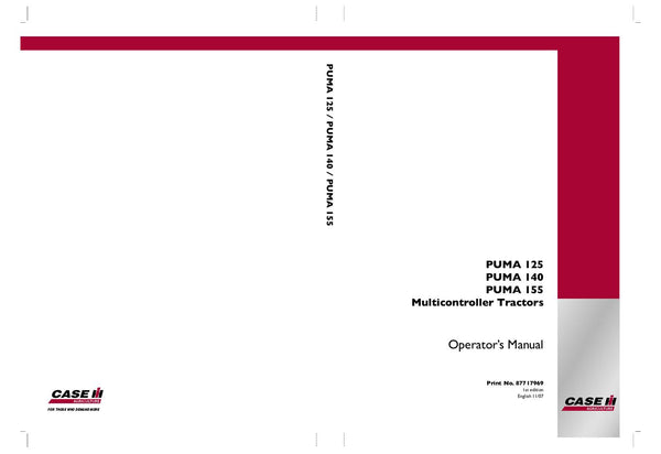It is an Complete Factory original factory Operator's Manual For Case IH Tractor PUMA 125,140,155. We Offers Manual HIGH quality images, diagrams, instructions to help you to operate. This document is printable, without restrictions, contains searchable text, bookmarks, crosslinks for easy navigation.