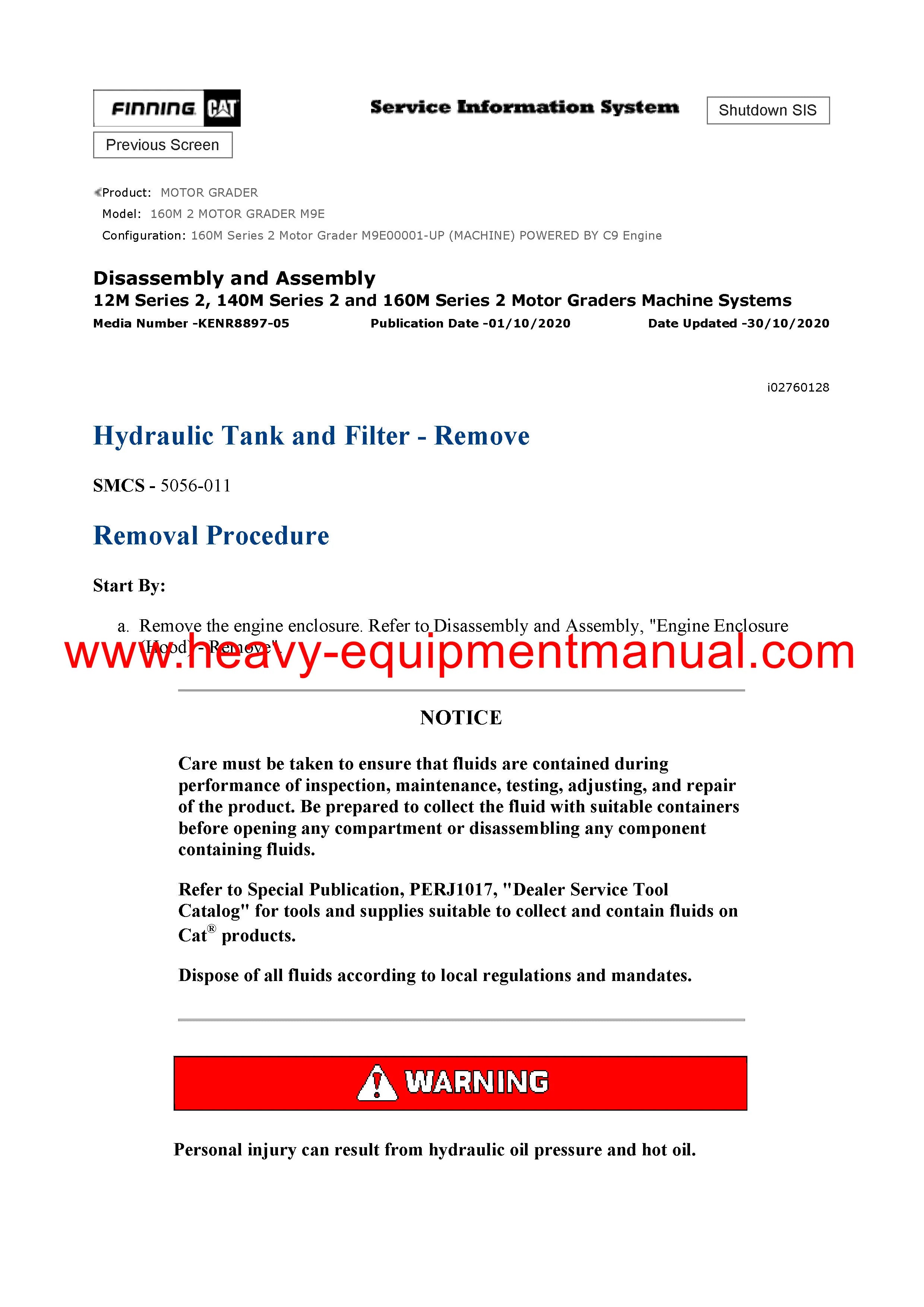 Caterpillar 160M2 MOTOR GRADER General Service Information
