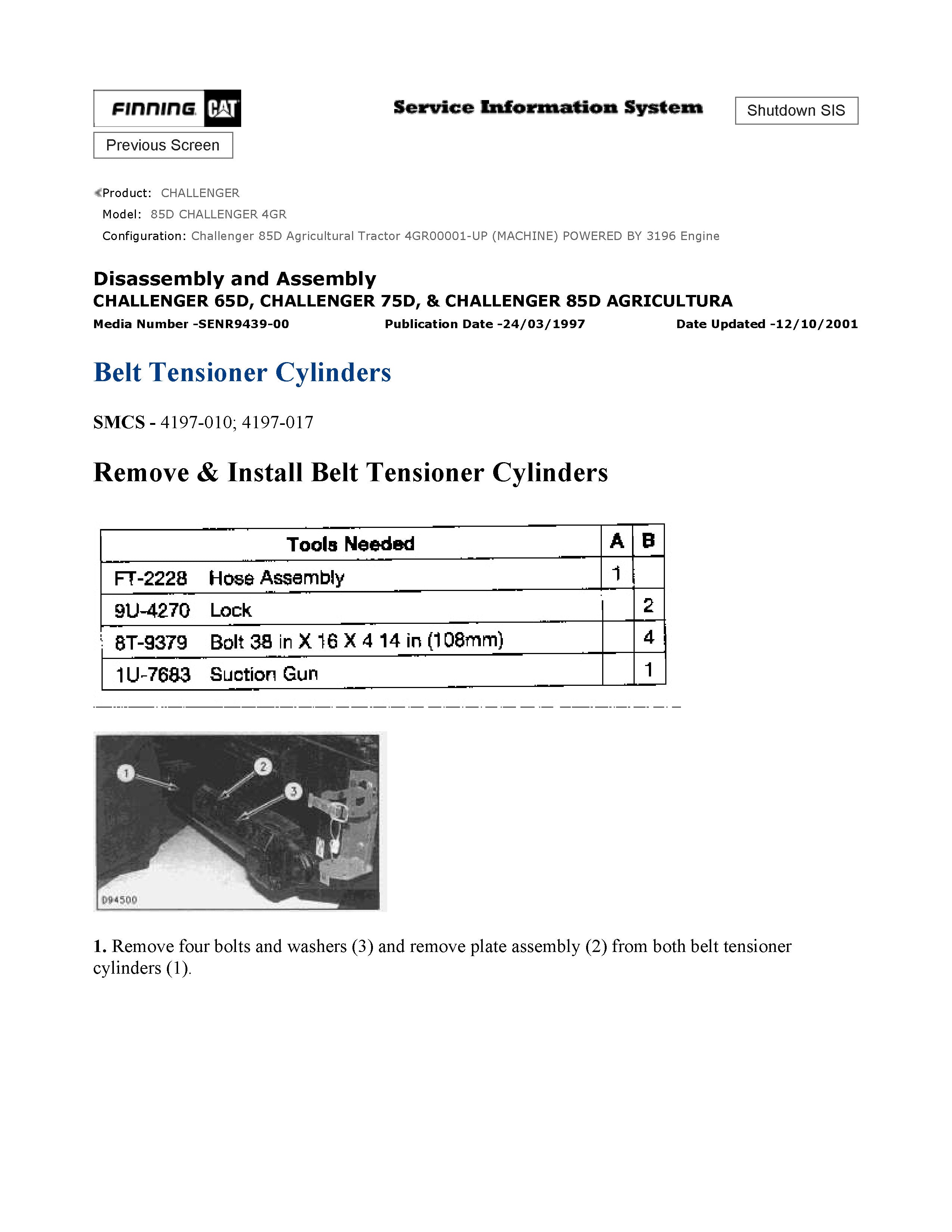 It is Complete Original Factory for Caterpillar 85D CHALLENGER covers all the service and repair information about Caterpillar 85D CHALLENGER. The information in this manual covers everything you need to know when you want to repair Caterpillar 85D CHALLENGER.