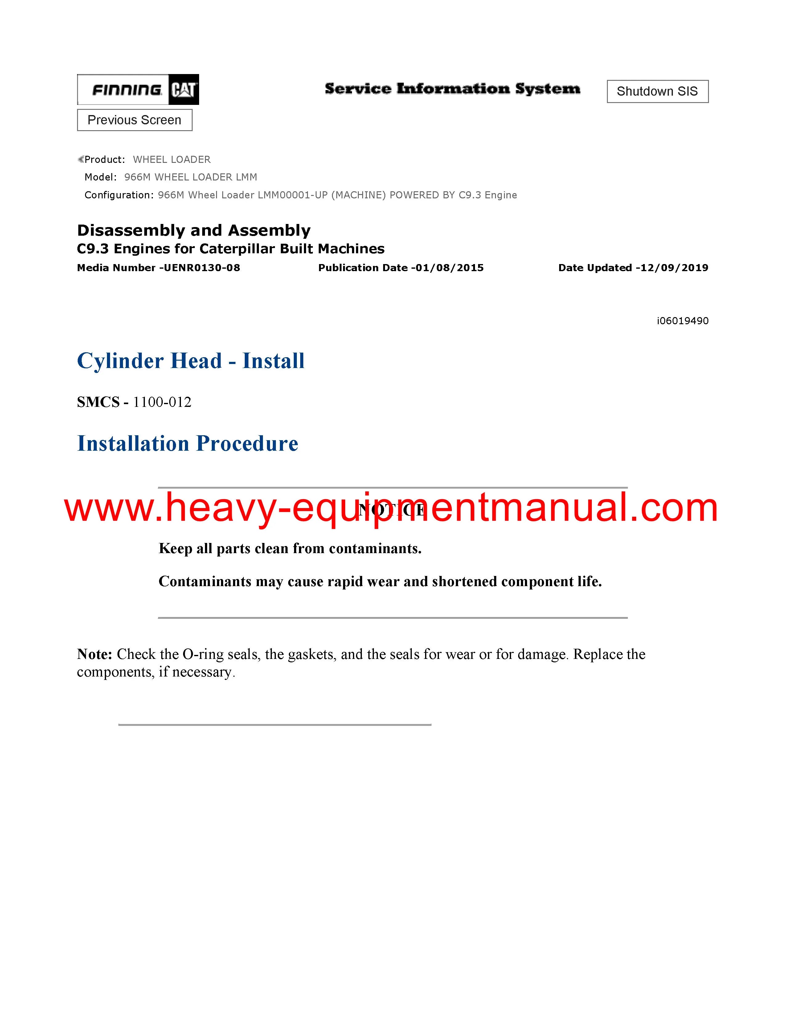 It is Complete Original Factory for Caterpillar 966M WHEEL LOADER. Covers all the service and repair information about Caterpillar 966M WHEEL LOADER. The information in this manual covers everything you need to know when you want to service and repair Caterpillar 966M WHEEL LOADER.