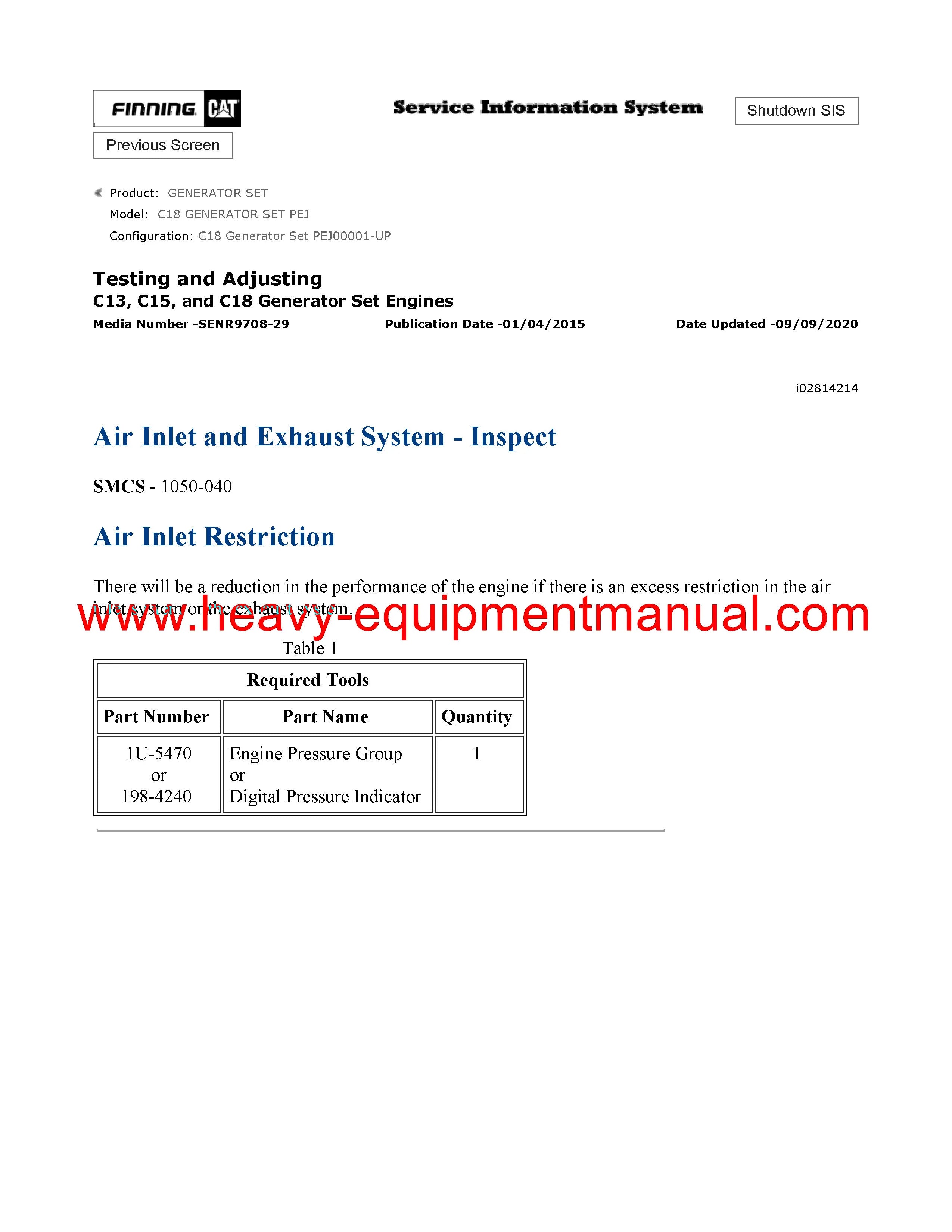 It is Complete Original Factory for Caterpillar C18 GENERATOR SET covers all the service and repair information about Caterpillar C18 GENERATOR SET. The information in this manual covers everything you need to know when you want to repair Caterpillar C18 GENERATOR SET.