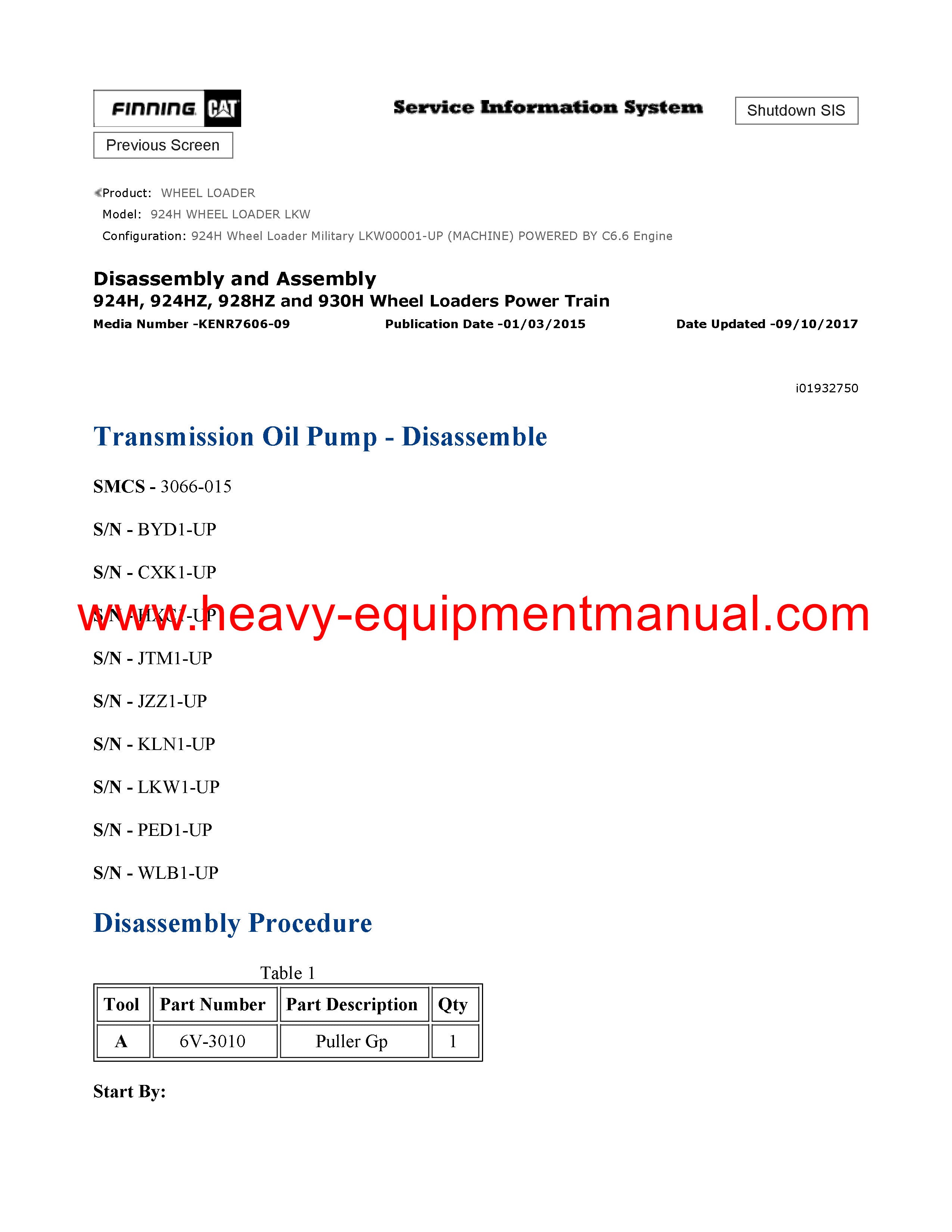 Caterpillar 924H WHEEL LOADER Disassembly and Assembly