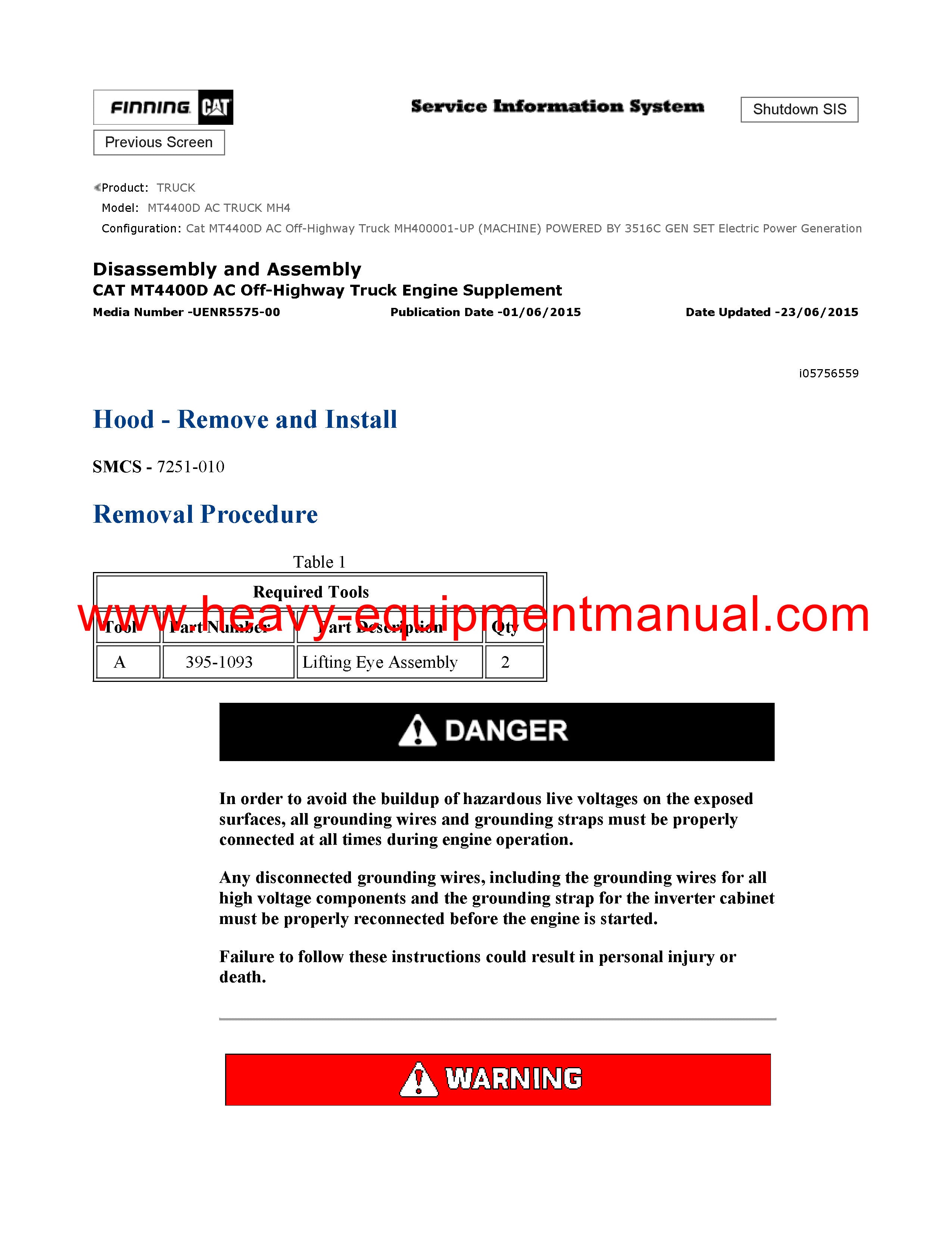 It is Complete Original Factory for Caterpillar MT4400D AC UNIT RIG MINING TRUCK covers all the service and repair information about Caterpillar MT4400D AC UNIT RIG MINING TRUCK. The information in this manual covers everything you need to know when you want to repair Caterpillar MT4400D AC UNIT RIG MINING TRUCK.