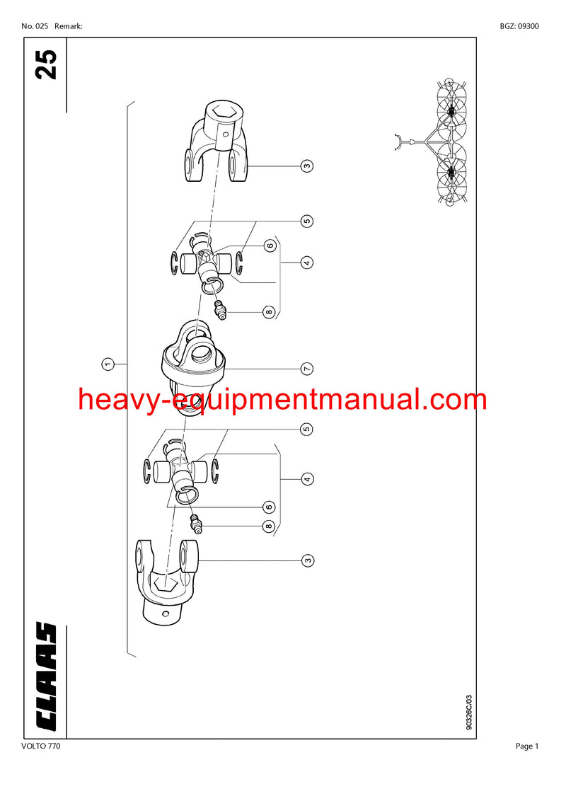 CLAAS VOLTO 770 TEDDER PARTS CATALOG MANUAL SN 62701001-62799999