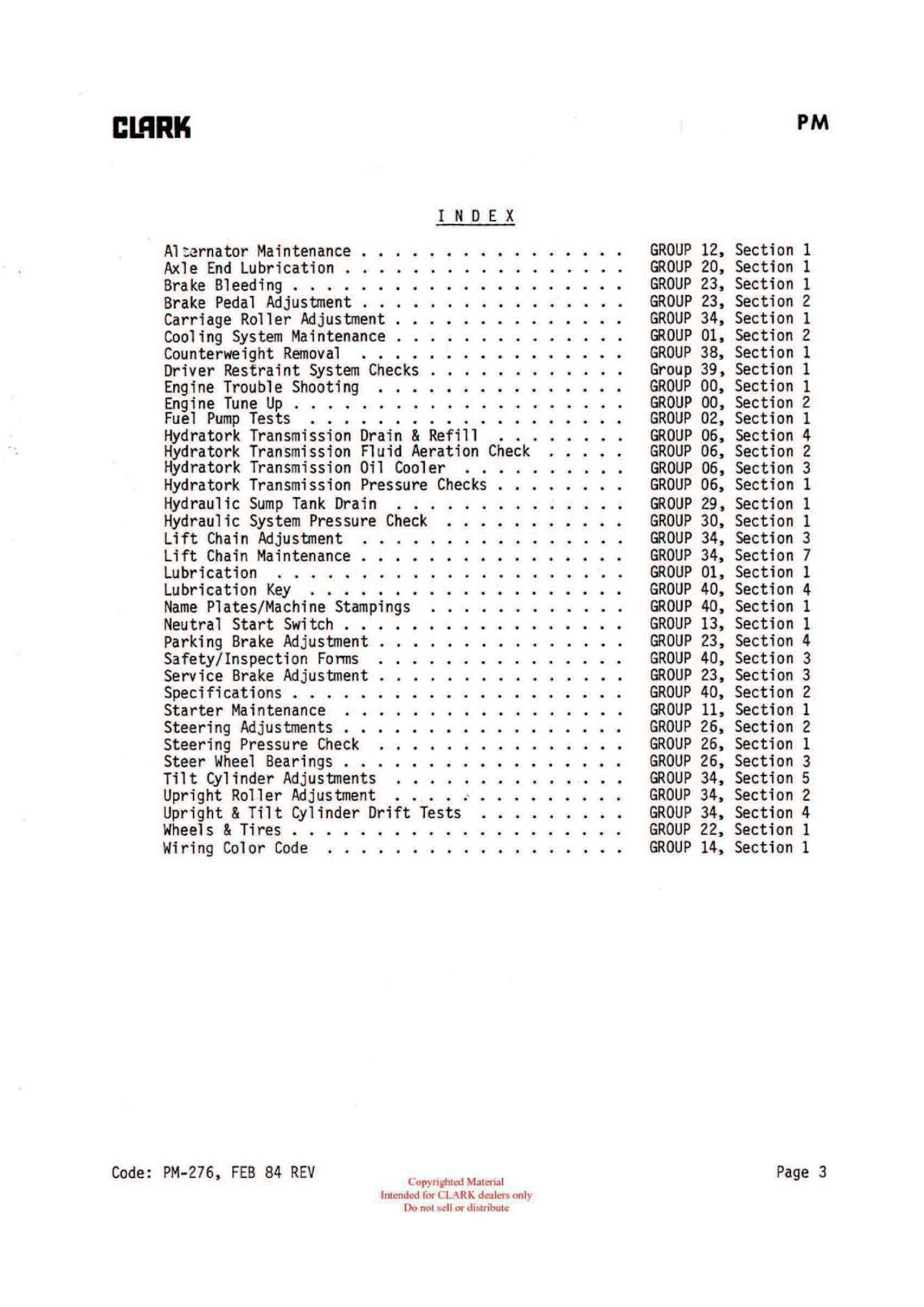 Get Instant Clark C500 Y60/100 (PMA-452) Forklift Planned Maintenance & Adjustment Manual - Download PDF