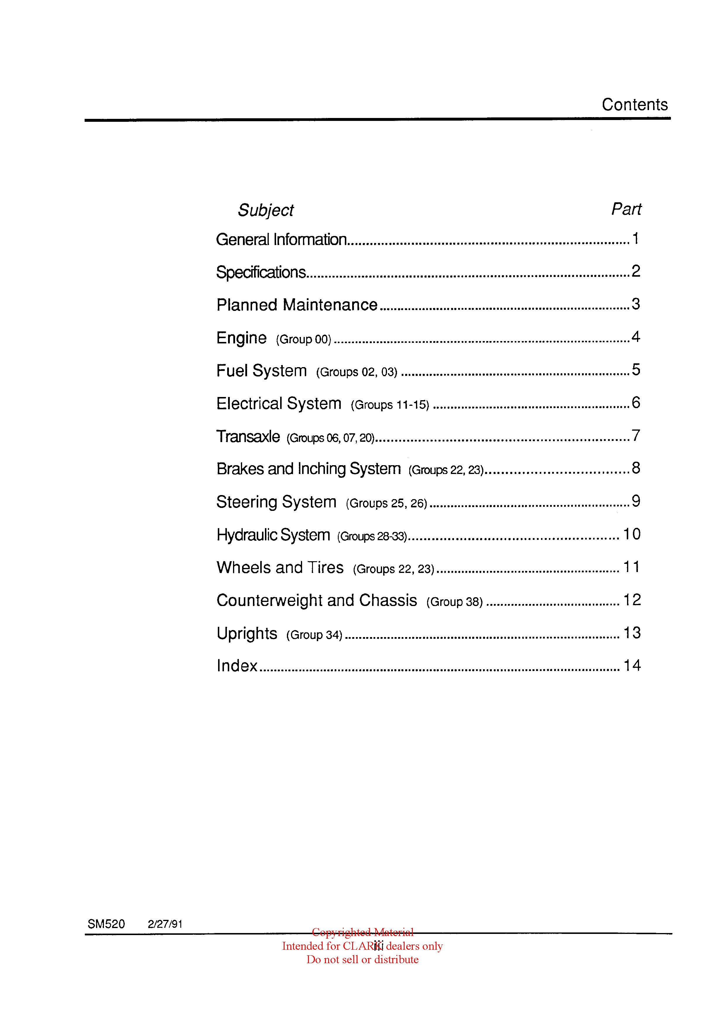 Get Instant Clark GCS (SM-520R) Forklift Service Repair Manual - Download PDF