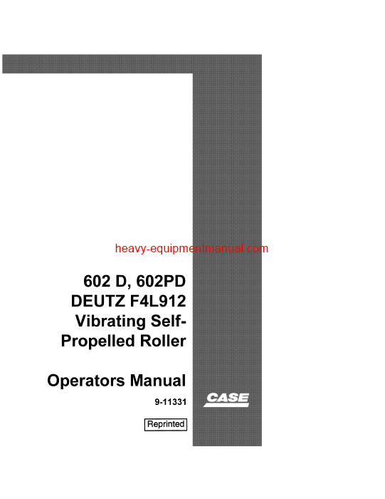 Download Case 602D, 602PD Deutz F4L912 Vibrating Self Propelled Roller Operator Manual (9-11331)