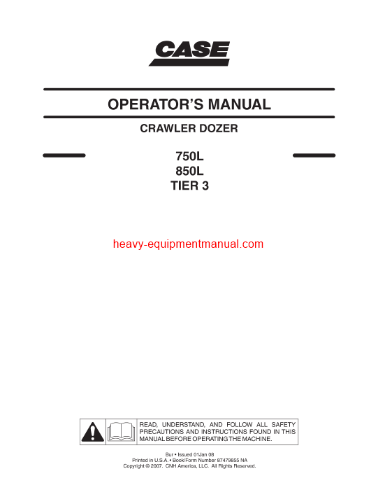 Case 750L, 850L Tier 3 Crawler Dozer Operator Manual (87479855NA)